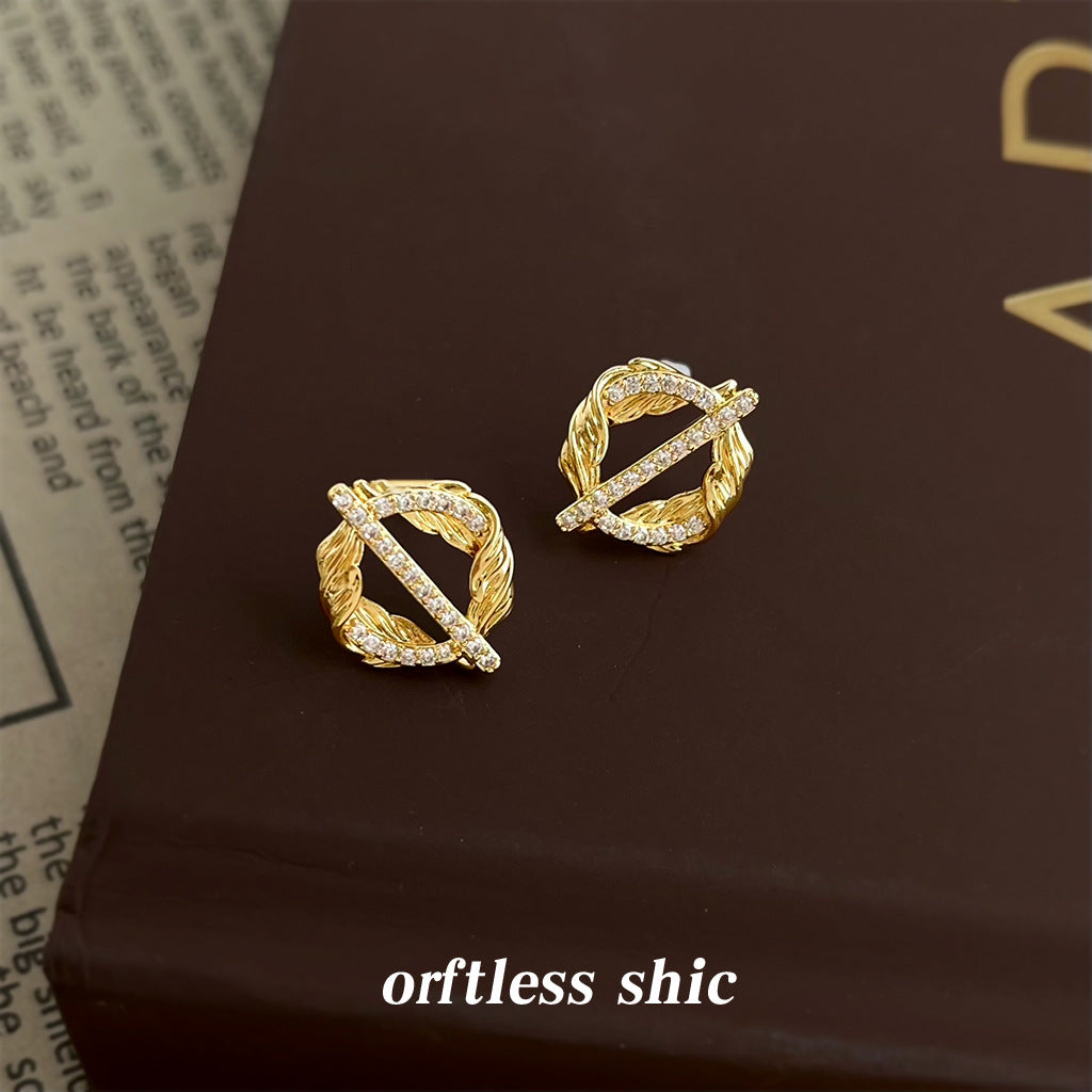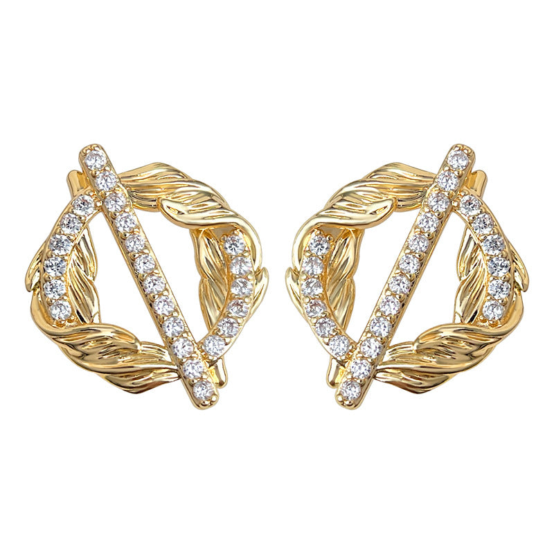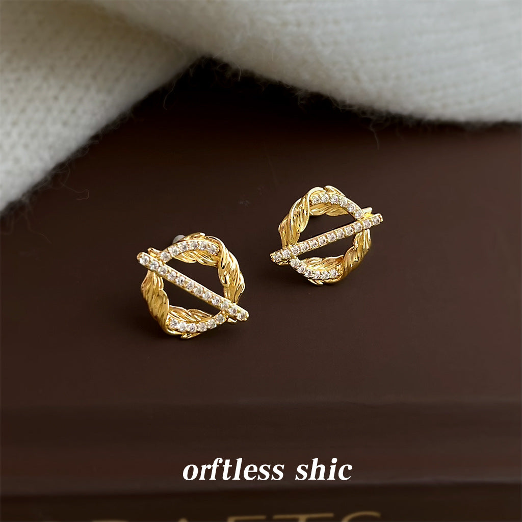 A廠【7153】麥穗~原創設計微鑲鋯石925銀針新款創意小眾個性圓形幾何耳飾耳環 25.11-4