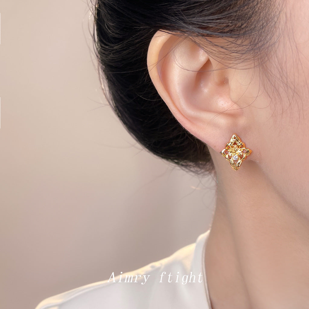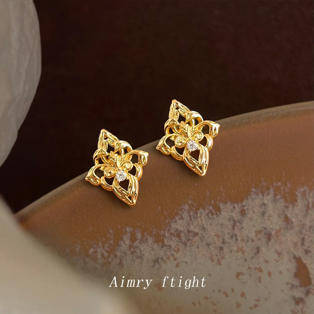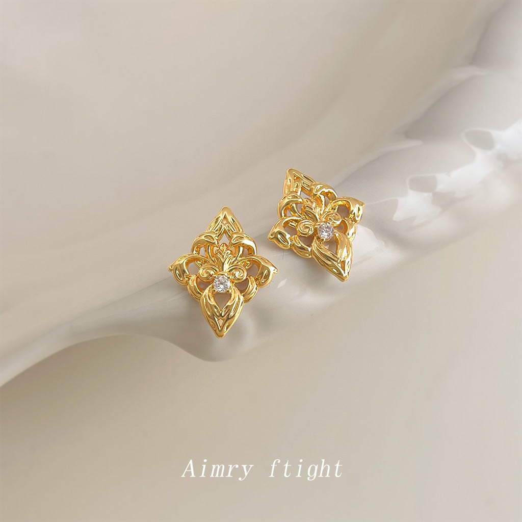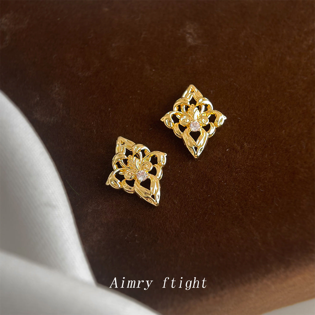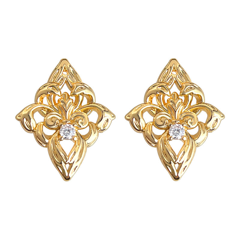 A廠【7164】鳶尾花原創設計微鑲鋯石925銀針鍍14K時尚高級感輕奢風耳飾耳環女 25.11-4