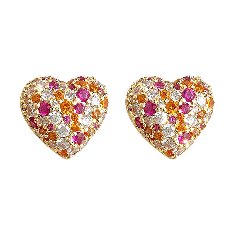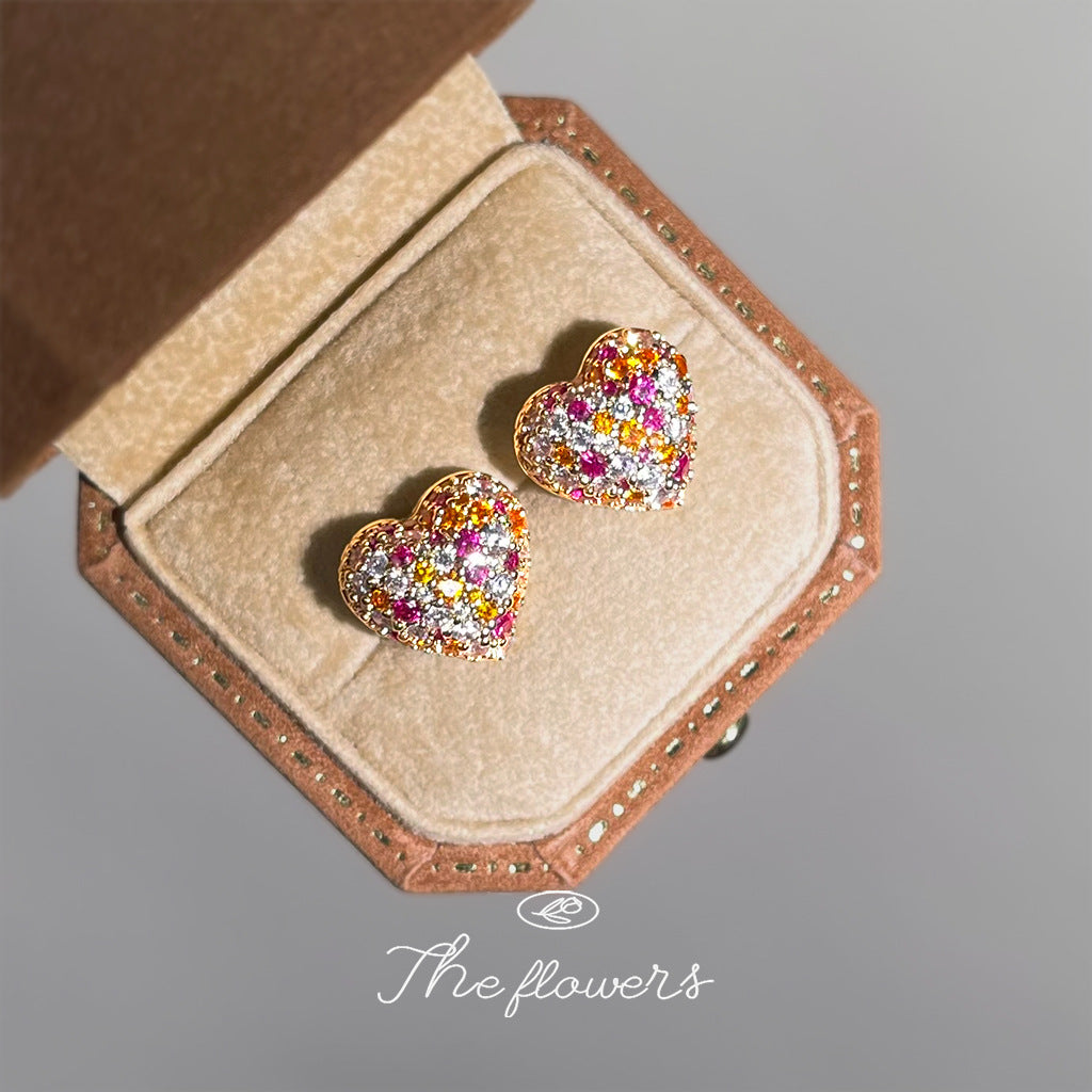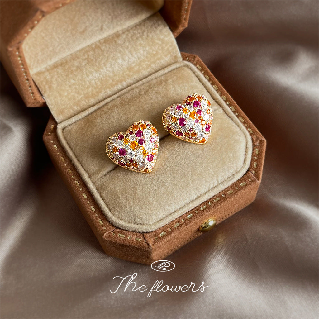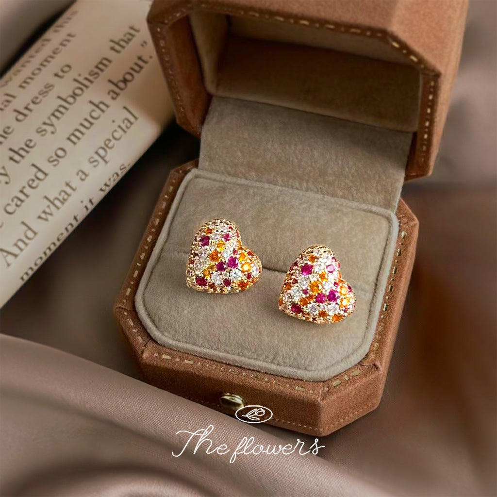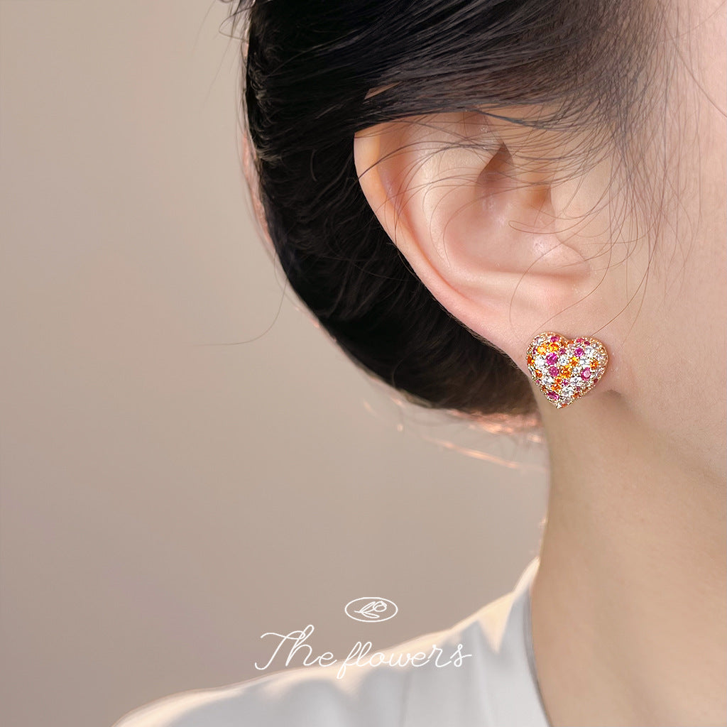 A廠【7180】輕奢風時尚滿鋯石彩鑽愛心 925銀針耳環女時尚高級感通勤百搭耳飾 25.12-1