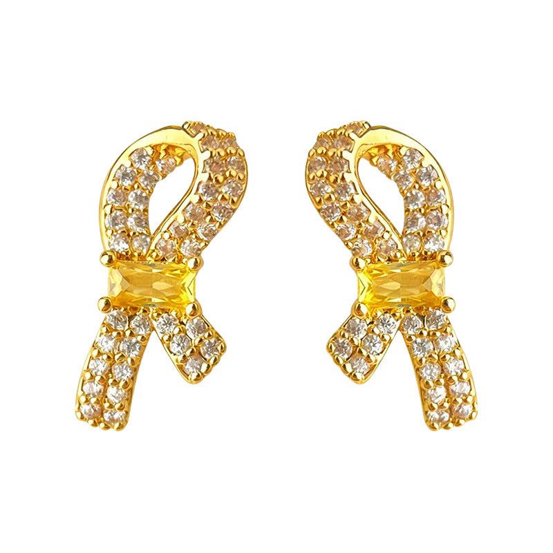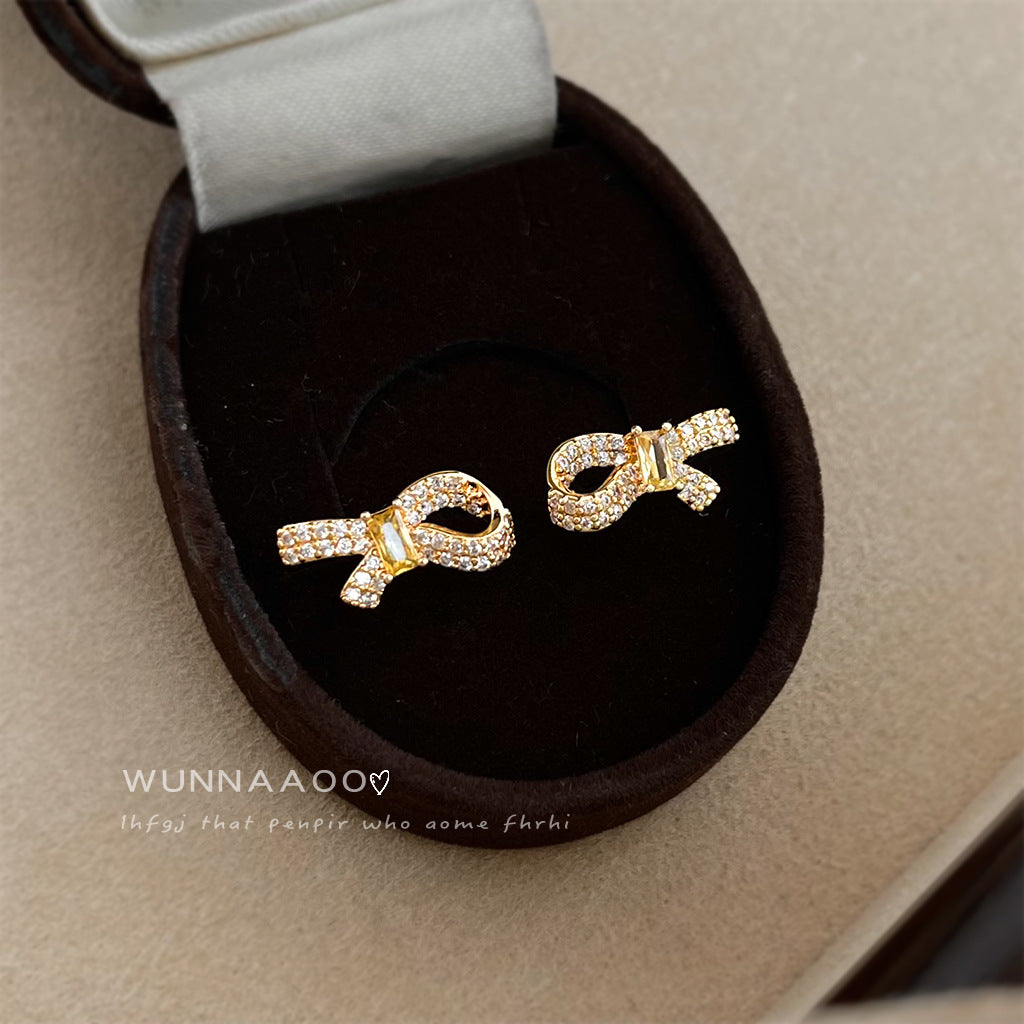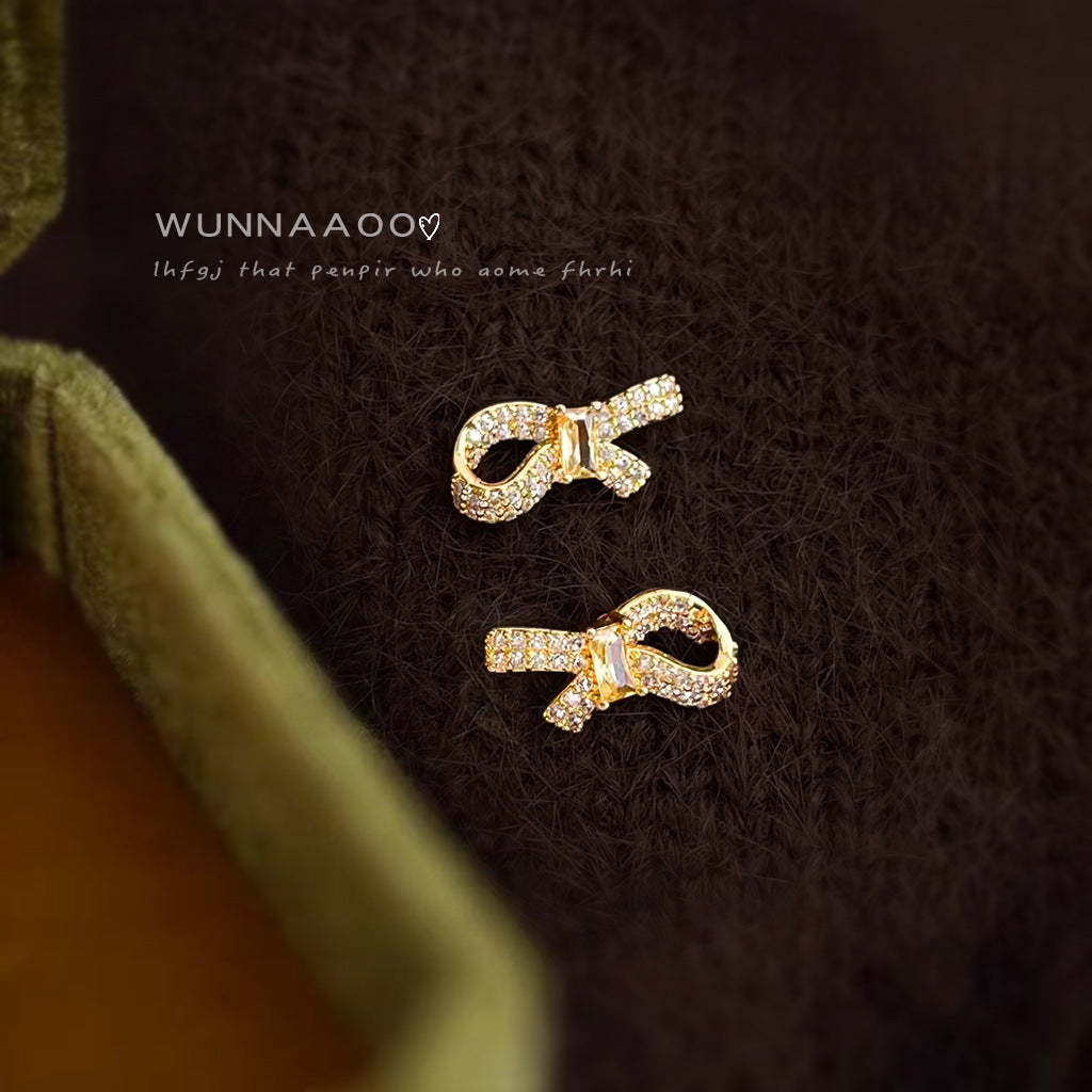 A廠【7185】微鑲鋯石925銀針鍍14K簡約個性時尚通勤高級感蝴蝶結耳環耳飾 25.12-1
