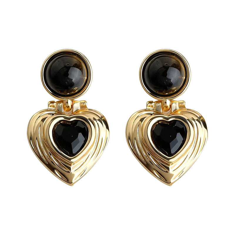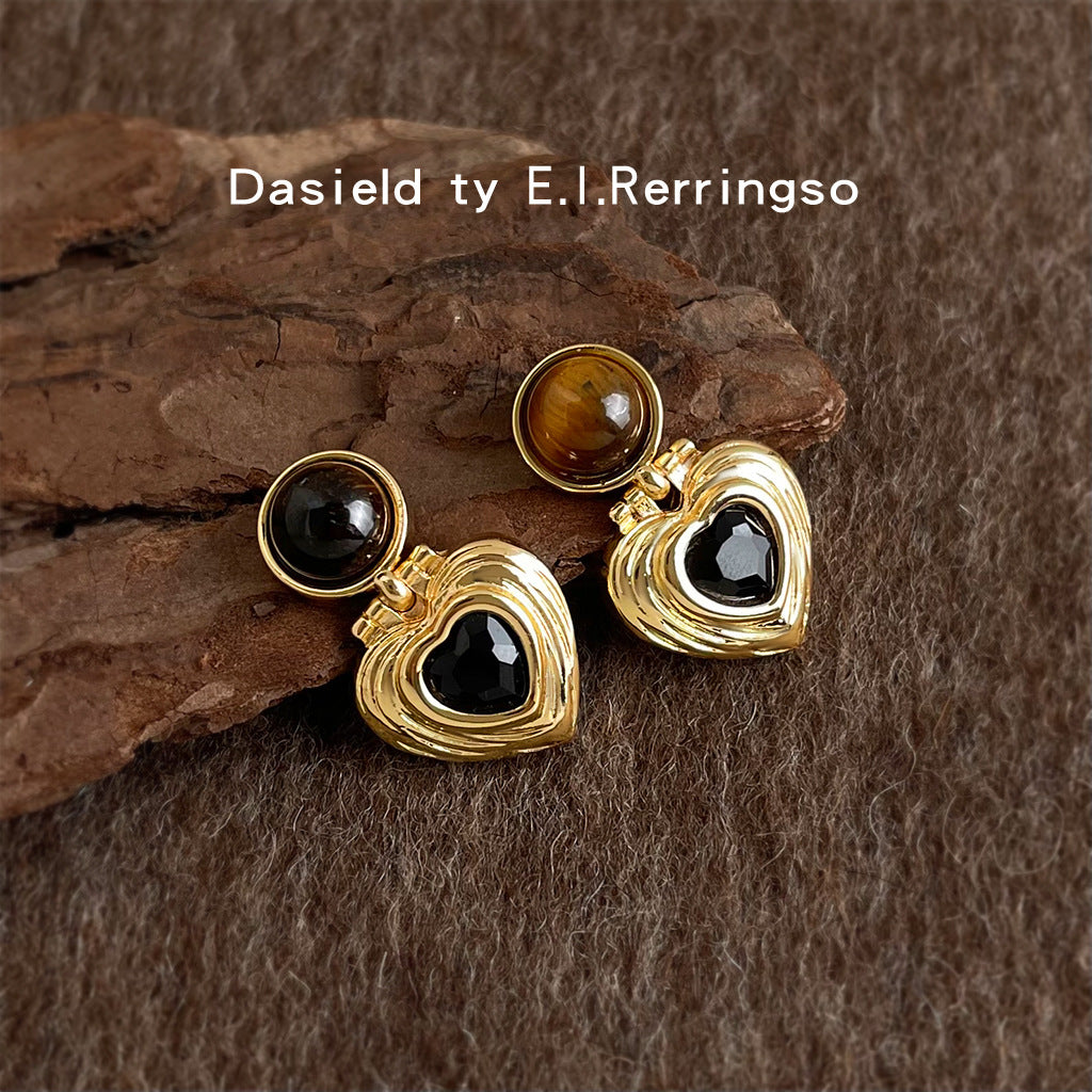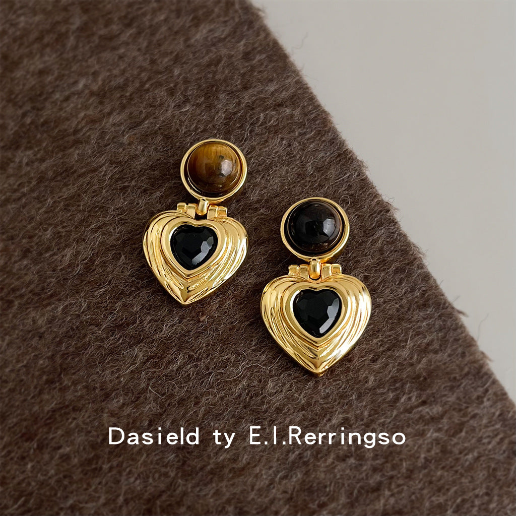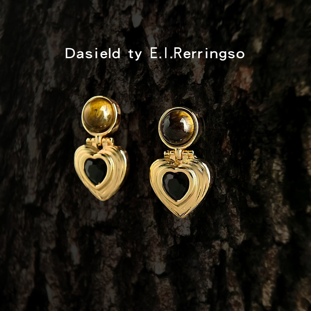 A廠【7187】秋冬爆款美拉德風文藝復古天然石虎眼石中古耳飾愛心幾何耳環 25.12-1