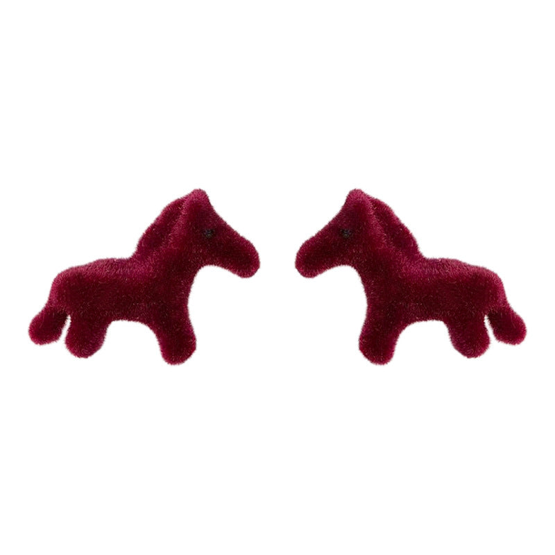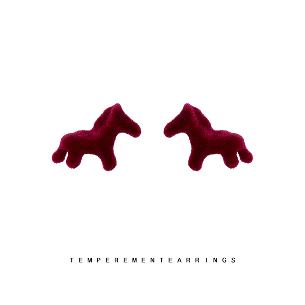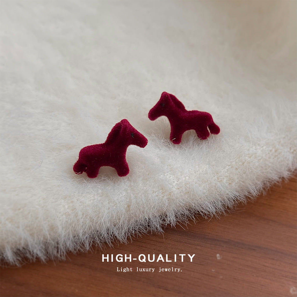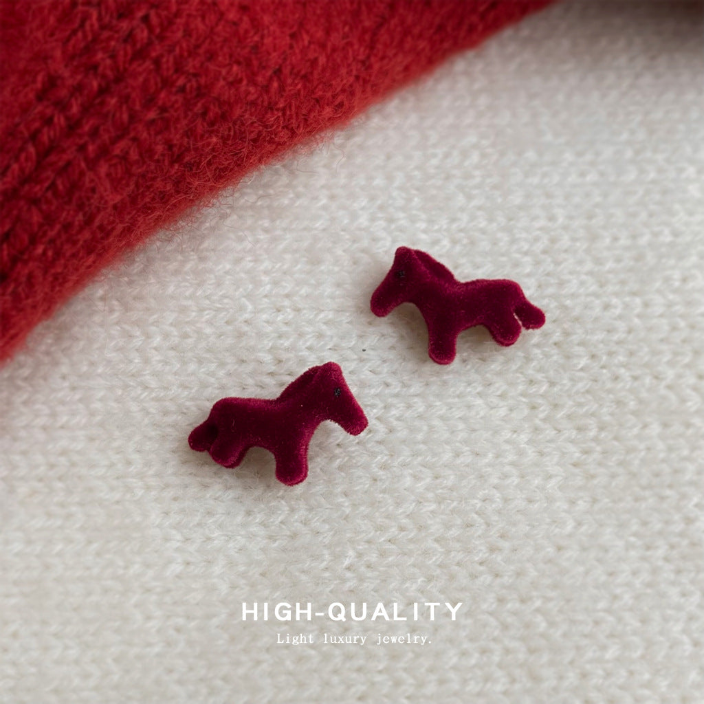 A廠【7188】植絨酒紅色銀針小馬耳環個性本命年新款文藝範秋冬耳飾飾品女 25.12-1