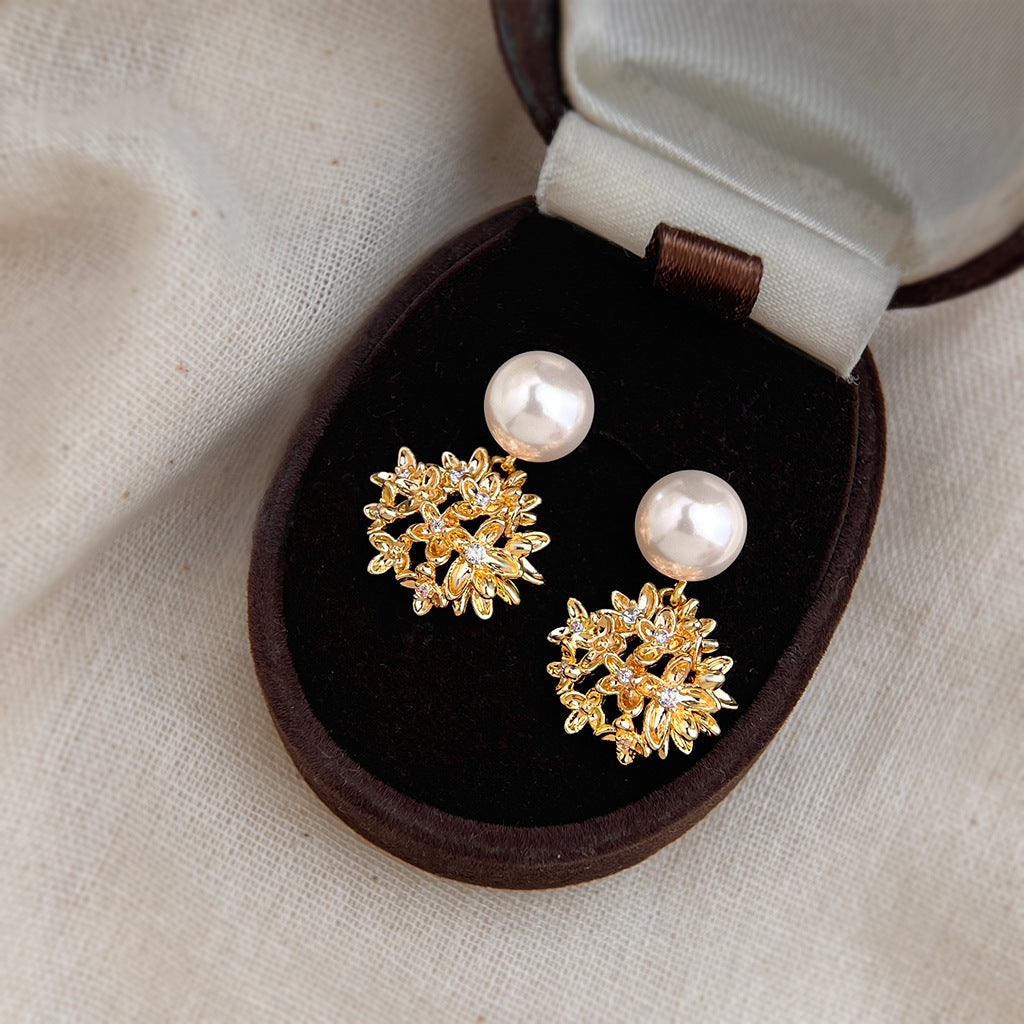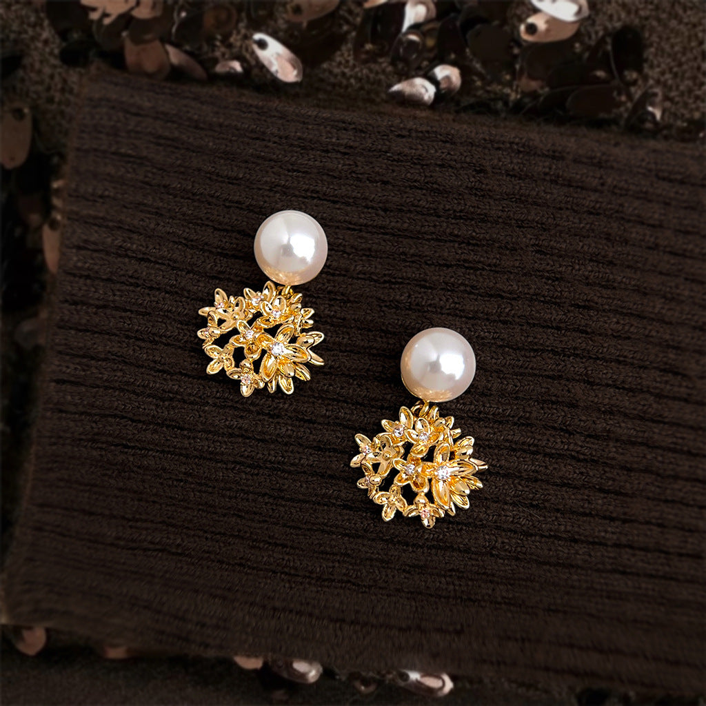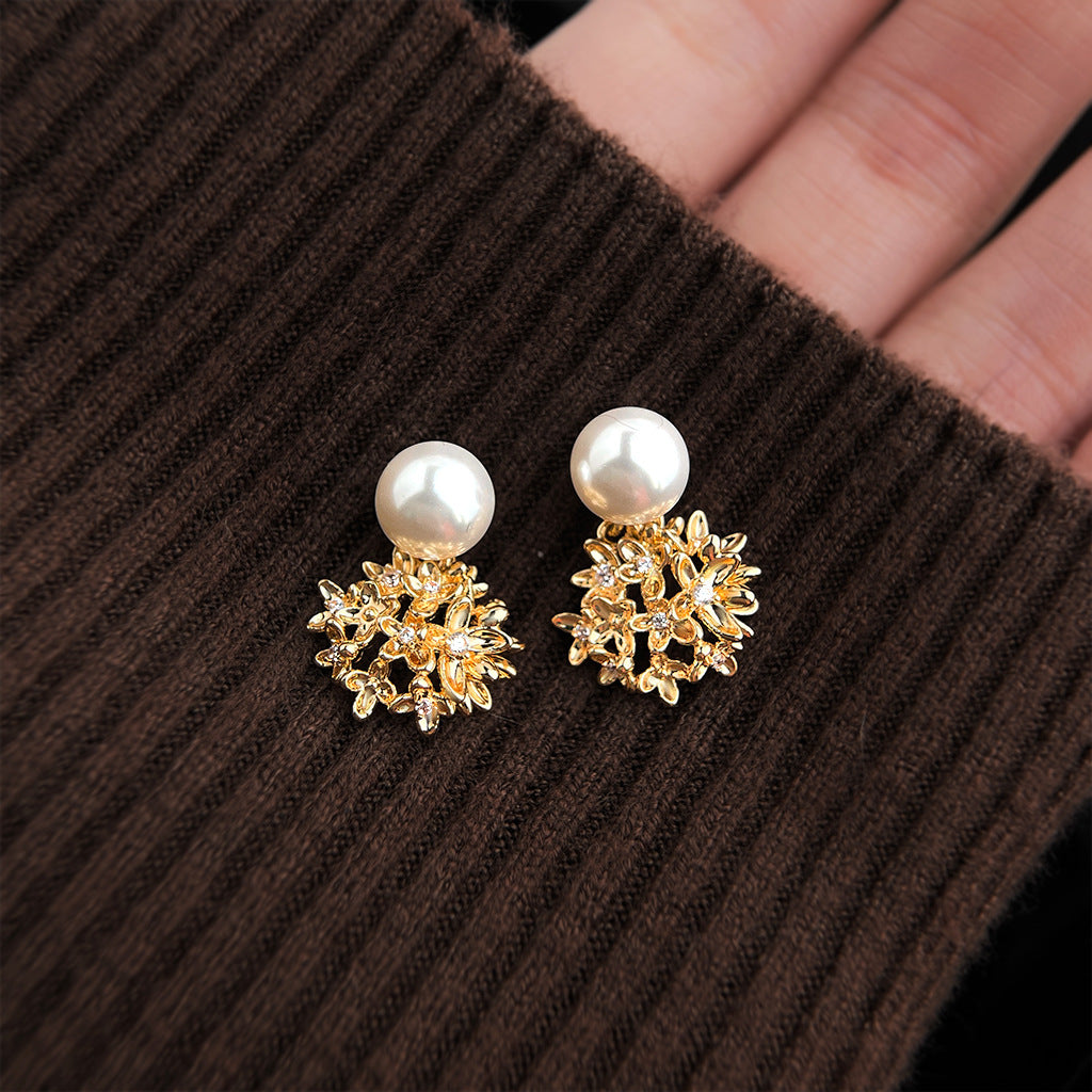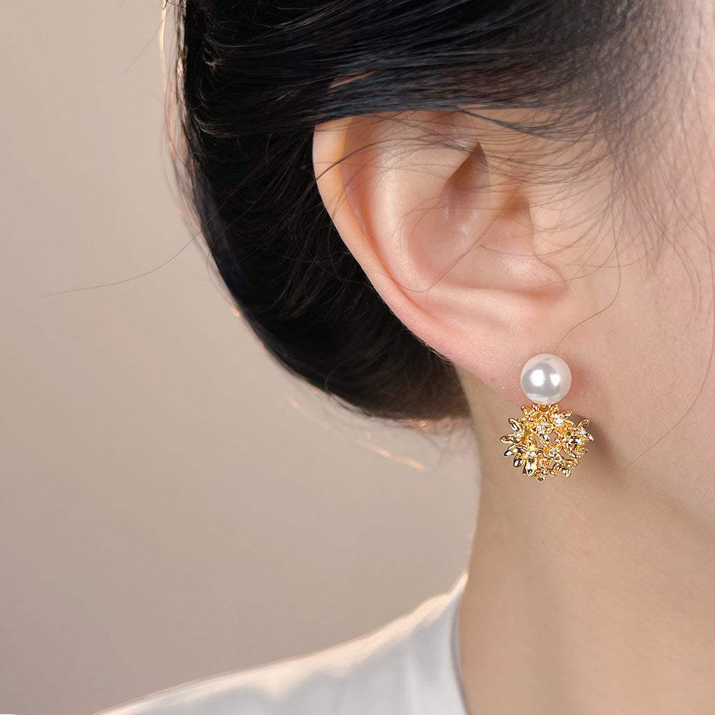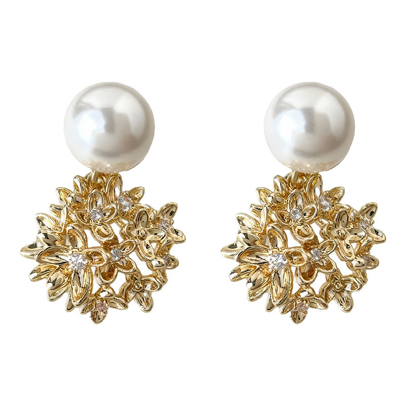 A廠【7191】原創繡球花朵925銀針微鑲鋯石玻璃珍珠時尚高級感新款耳環女 25.12-2