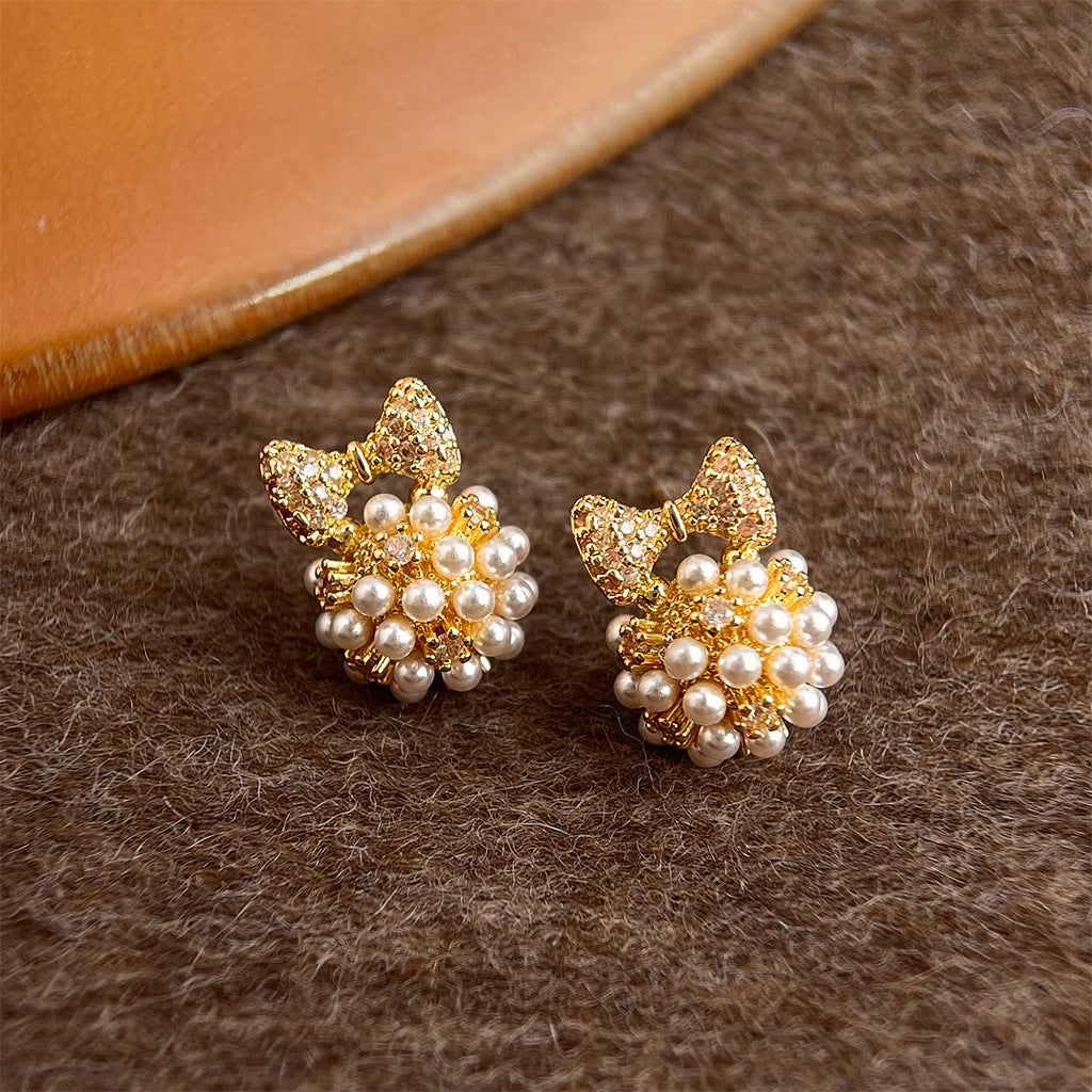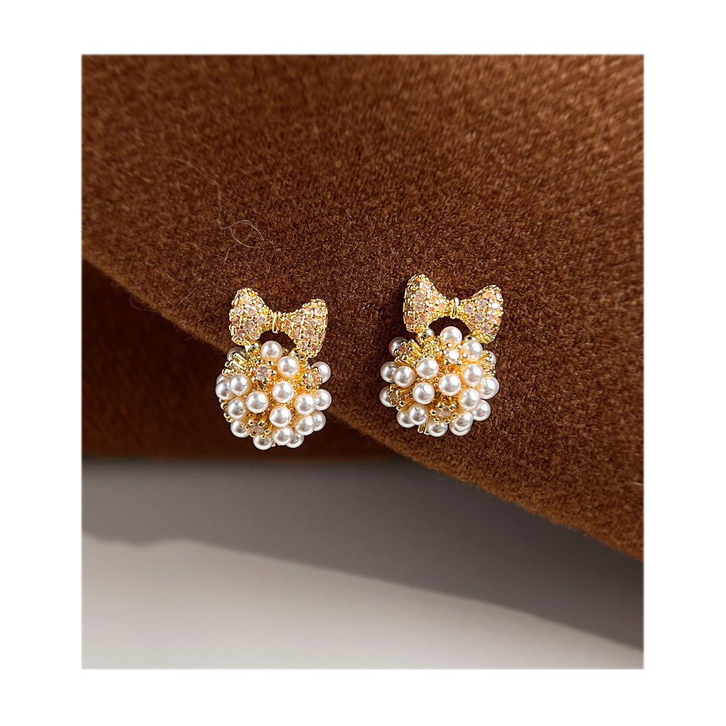 A廠【7204】時尚高級感小香風s925銀針微鑲鋯石蝴蝶結幾何清新甜美耳飾耳環女 25.12-2