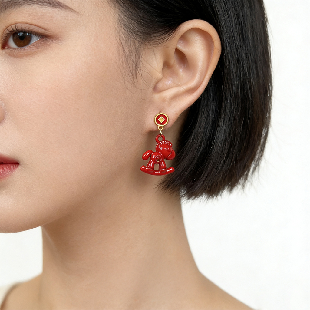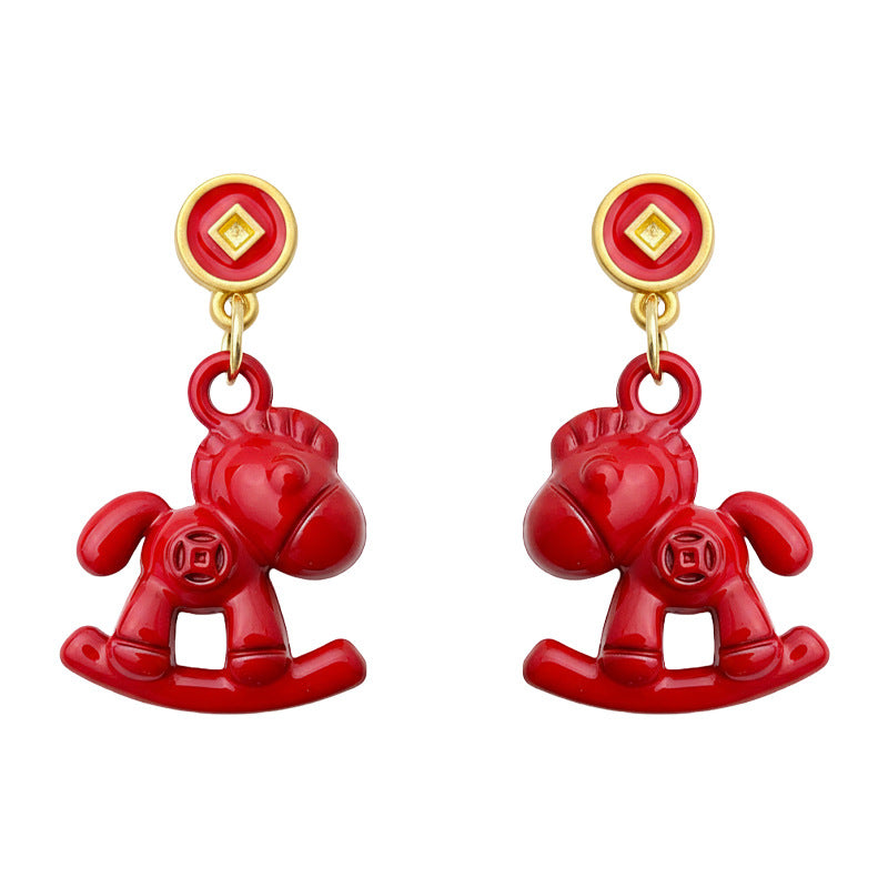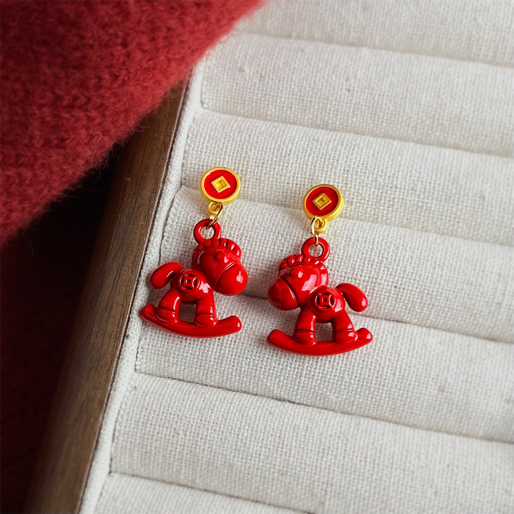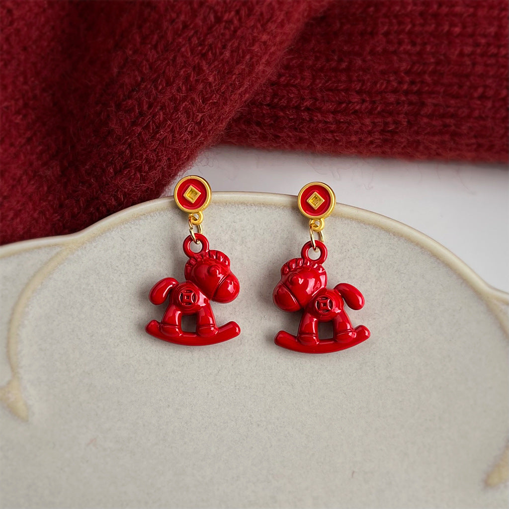 A廠【7207】馬上有錢馬年新年款木馬吉祥新款個性國潮耳環耳環女 25.12-2
