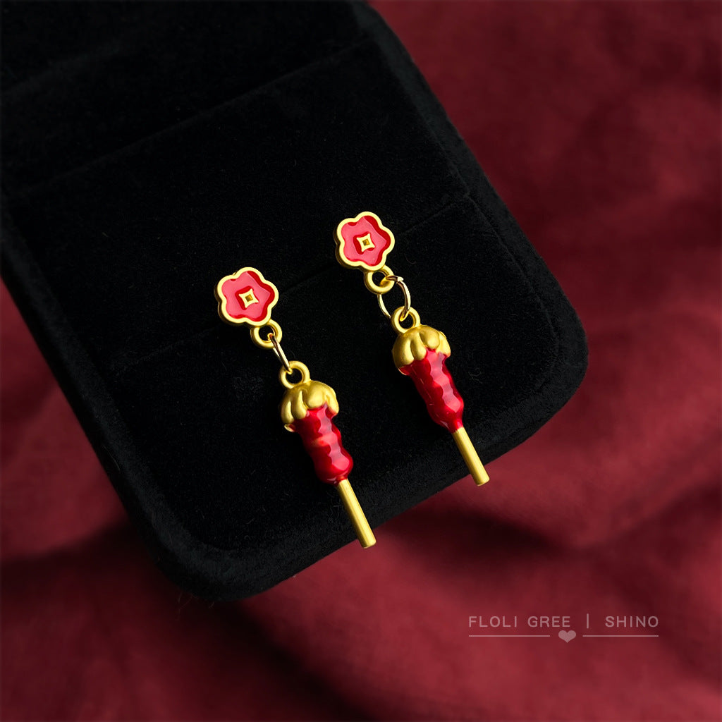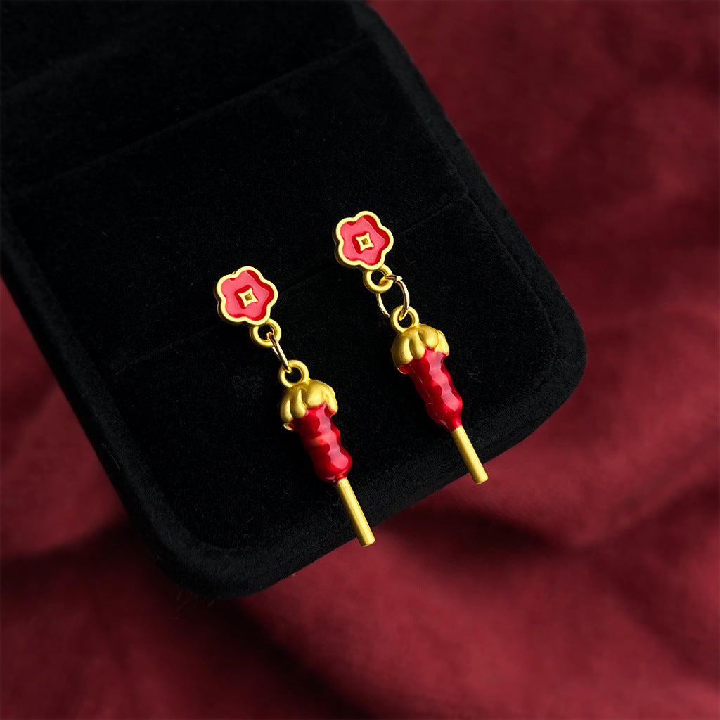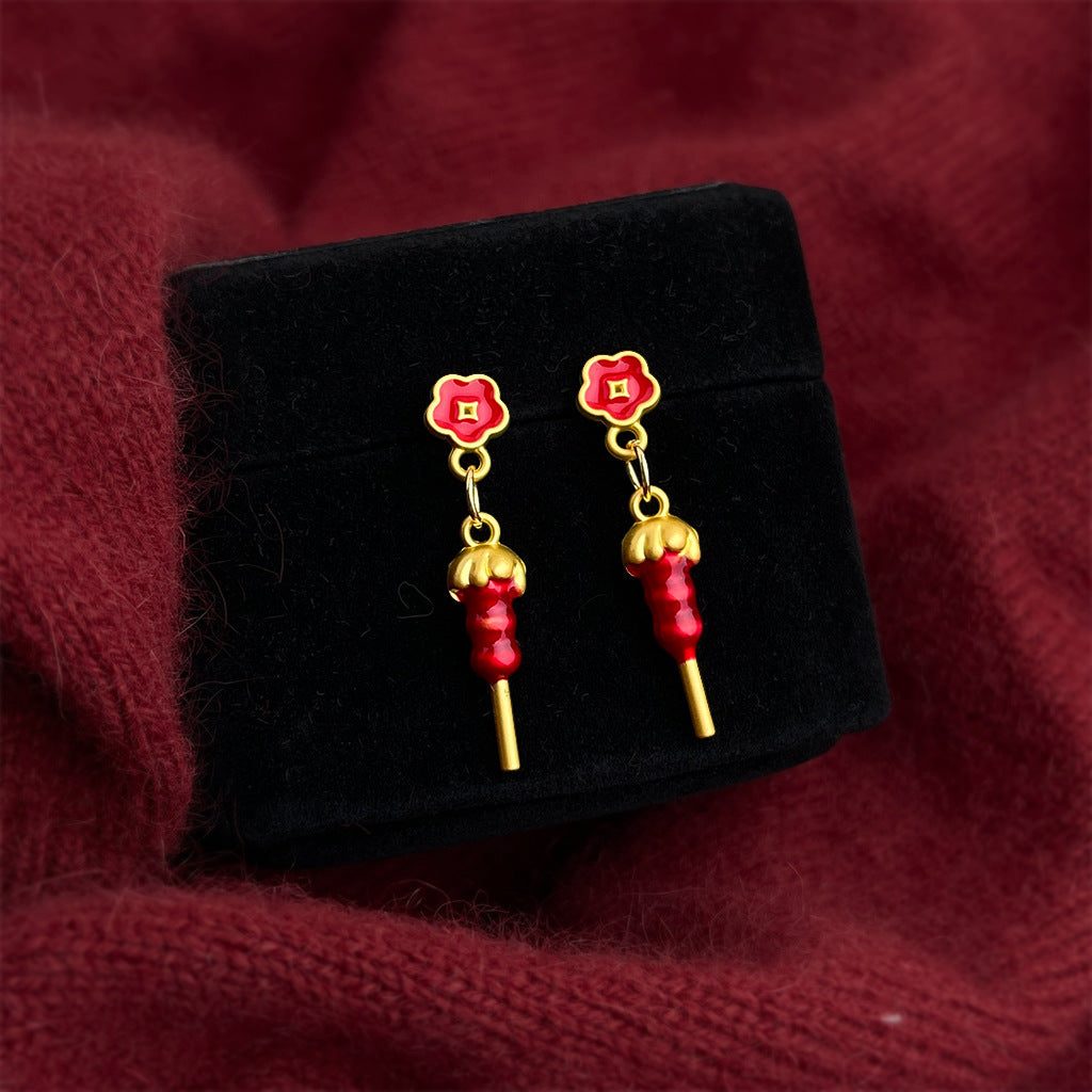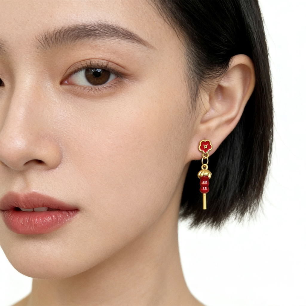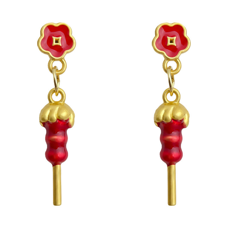 A廠【7209】時尚高級感糖葫蘆串新款耳飾琺瑯滴釉新年紅色國潮耳環 25.12-2