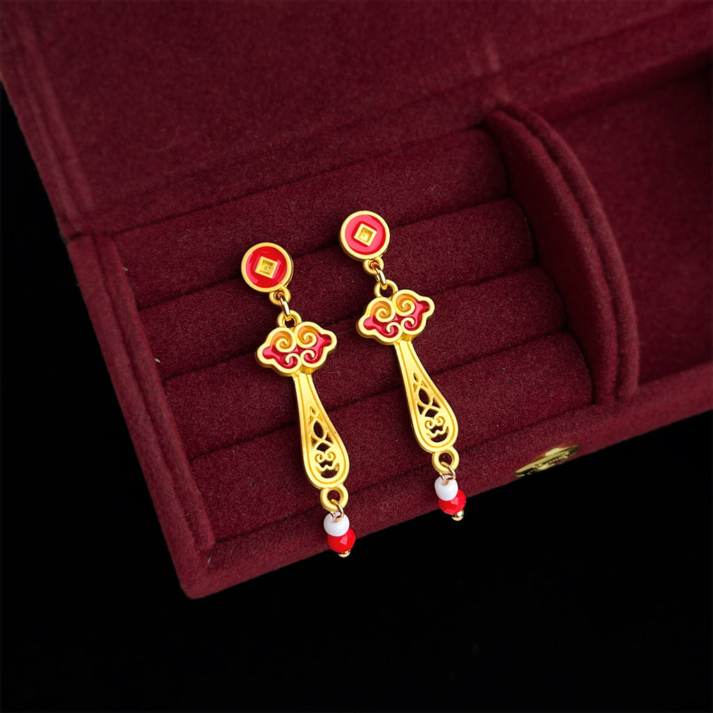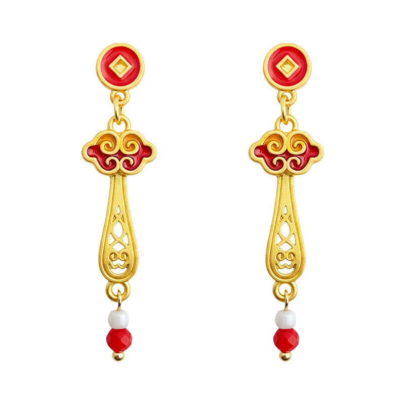 A廠【7214】新年款玉如意琺瑯手工彩繪滴釉紅色新款耳飾長款國潮耳環飾品 25.12-2