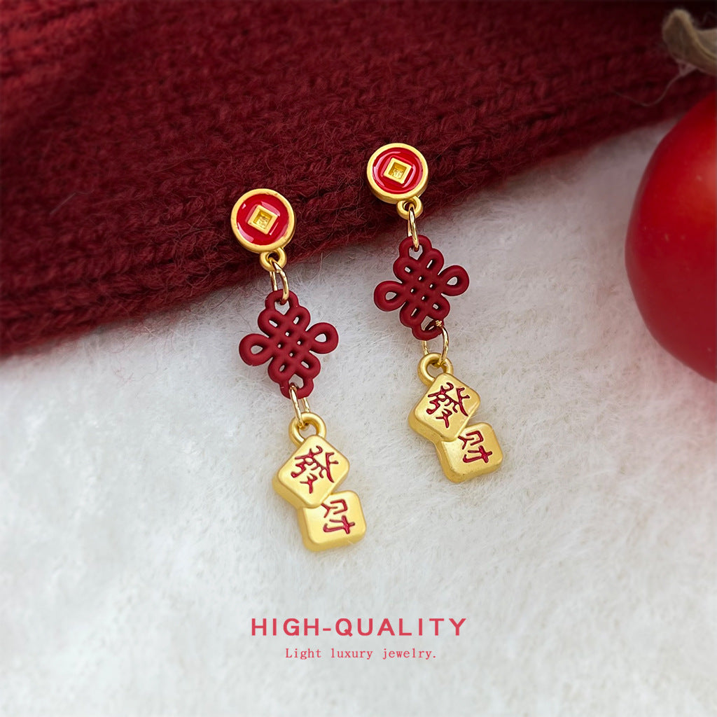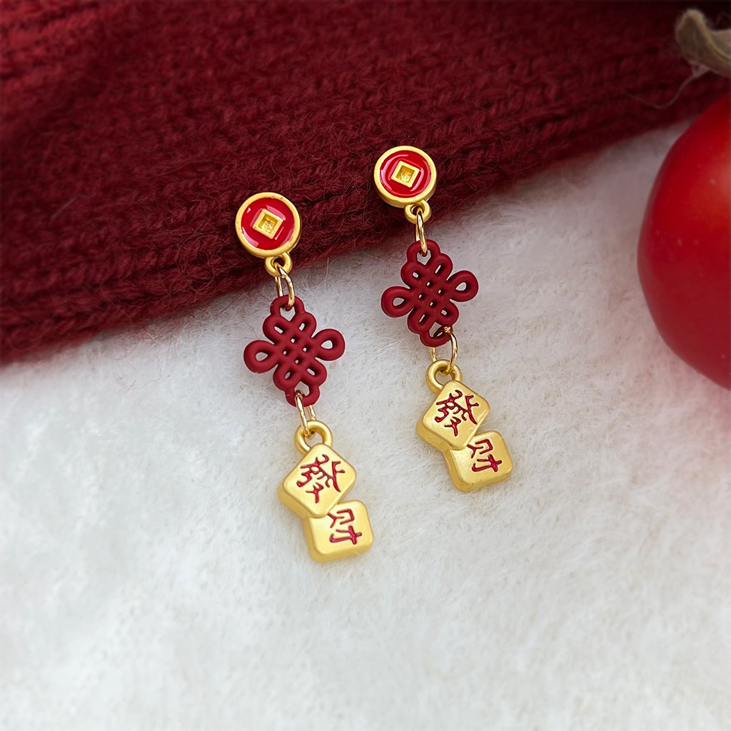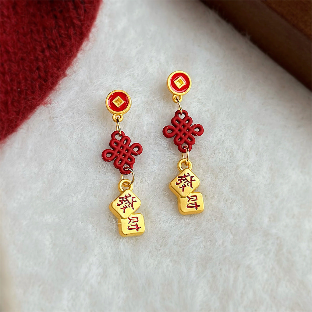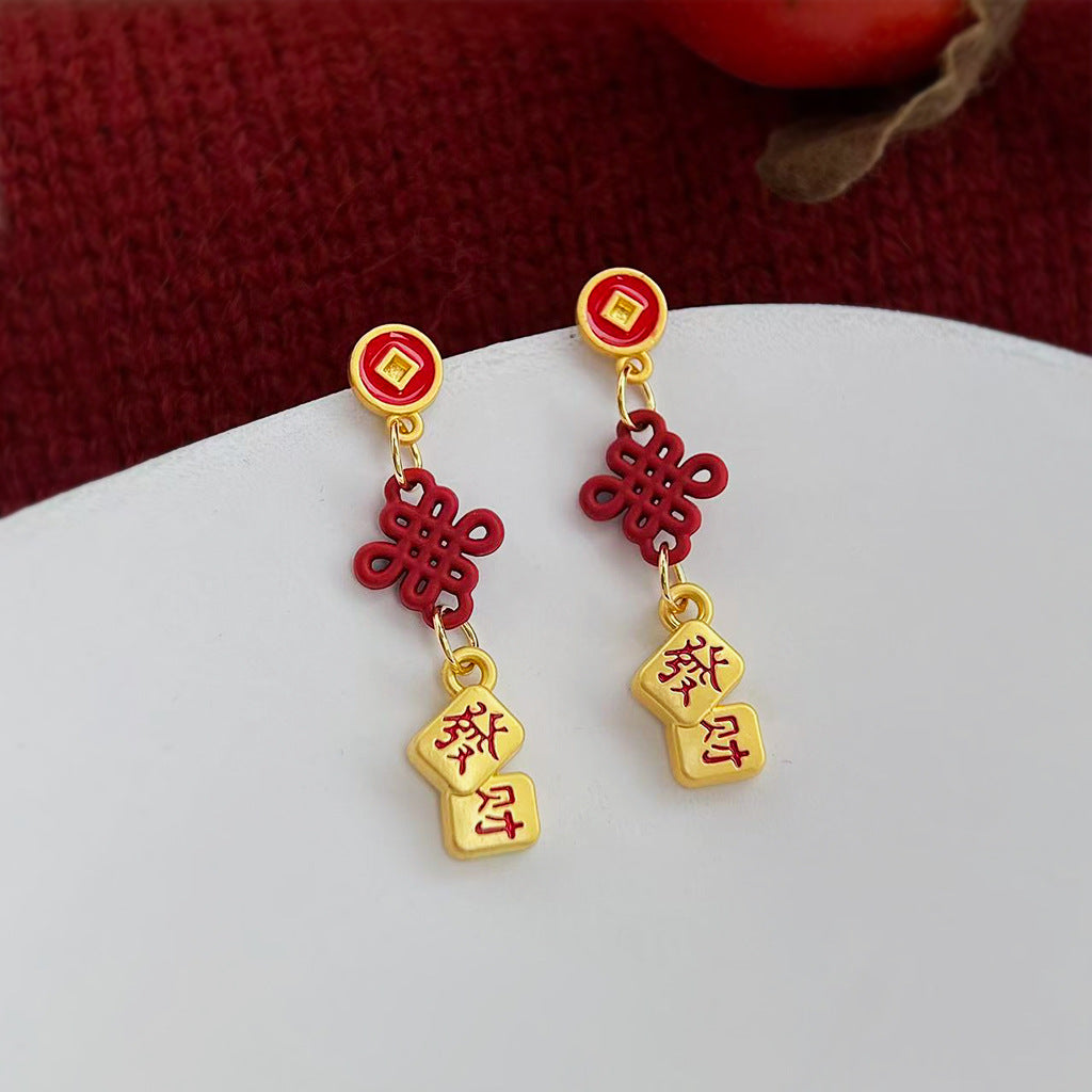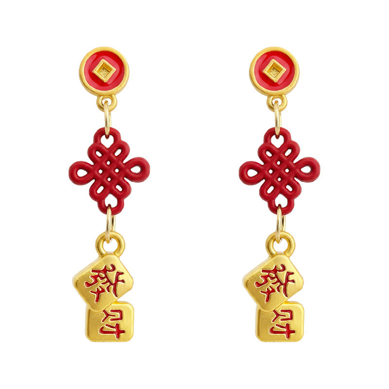 A廠【7220】馬年大吉恭喜發財國潮新中式民族風長款新年款耳環耳環飾品女 25.12-2