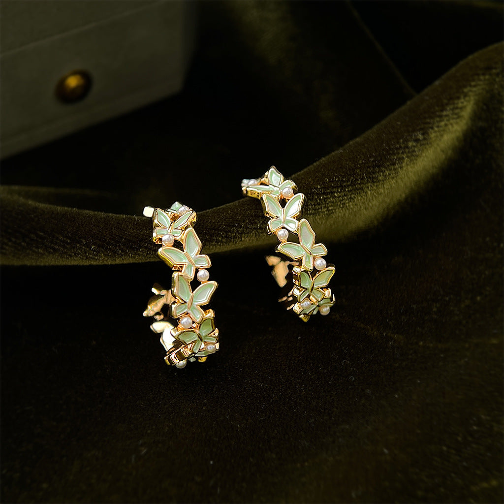A廠【7242】春款森系小清新田園風琺瑯滴釉蝴蝶耳環幾何圓形新耳飾飾品 26.01-3