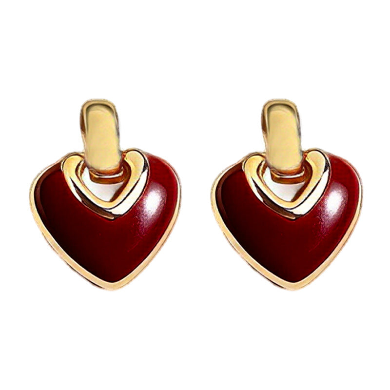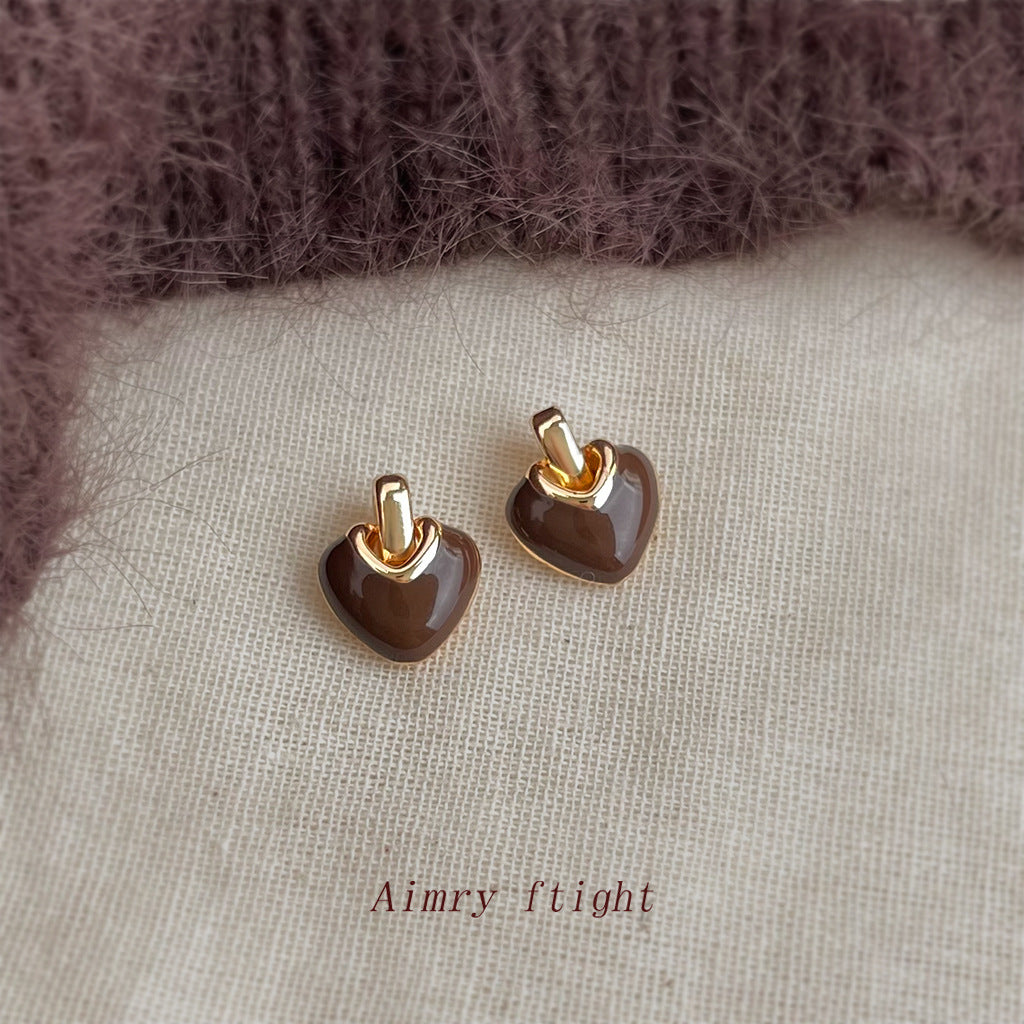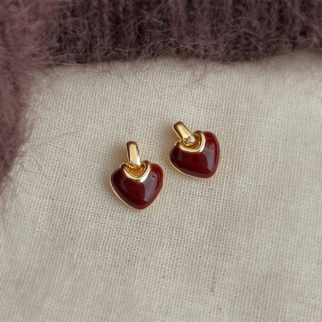 A廠【7256】時尚高級感文藝復古925銀針琺瑯滴釉愛心耳飾港風耳釘 25.12-3