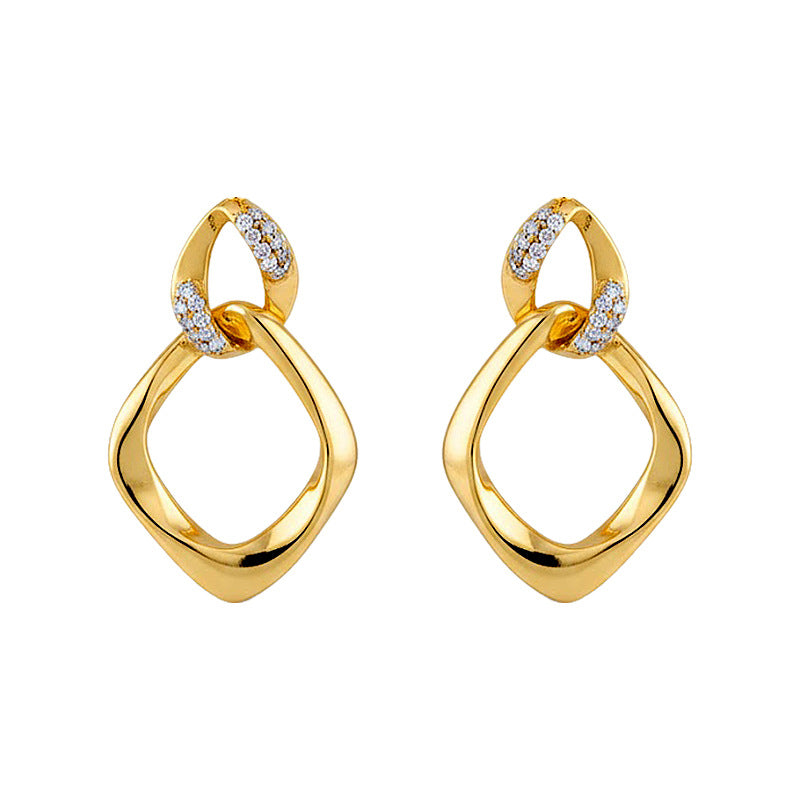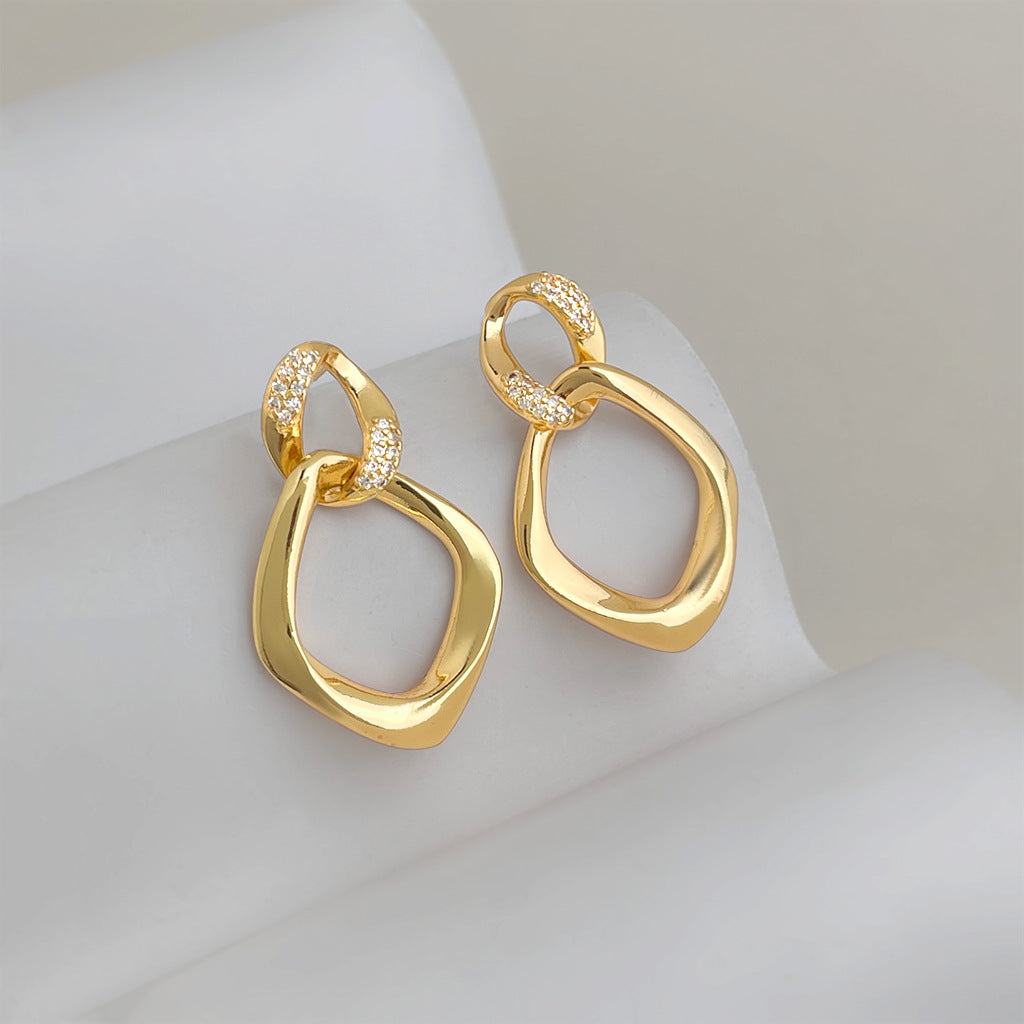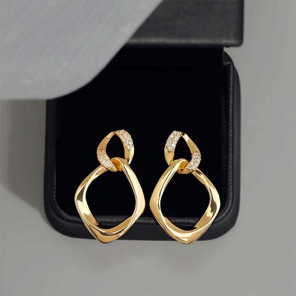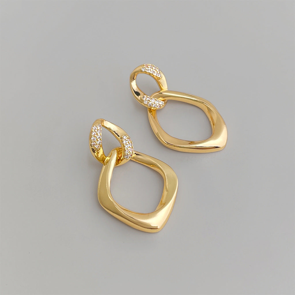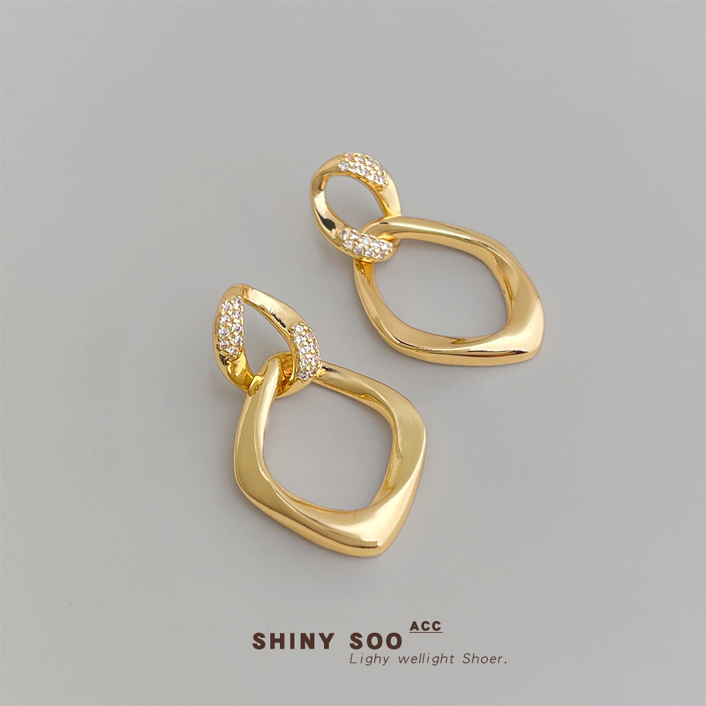 A廠【7323】時尚高級感重工質感銀針微鑲鋯石雙層立體幾何鏤空耳飾耳環女 26.01-2
