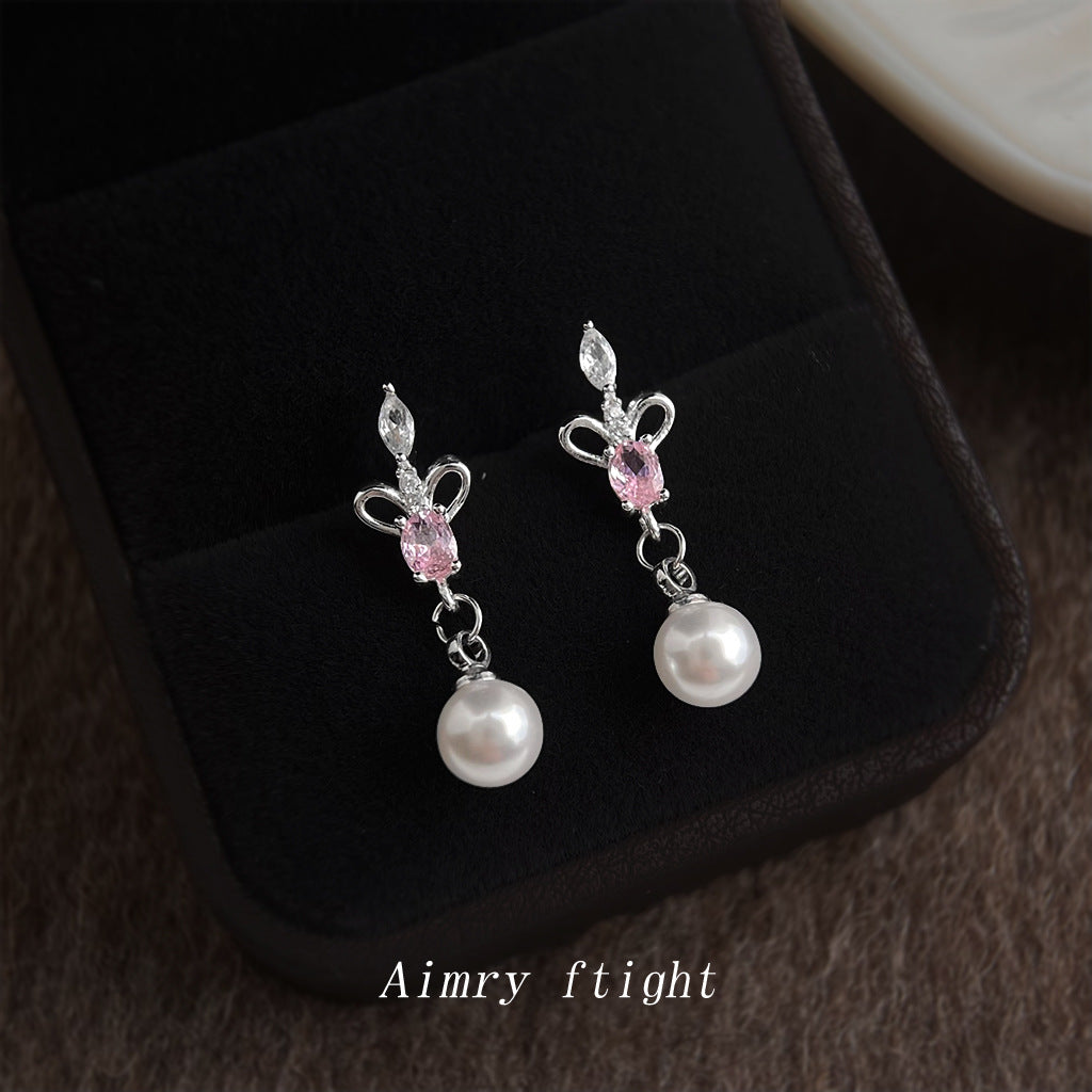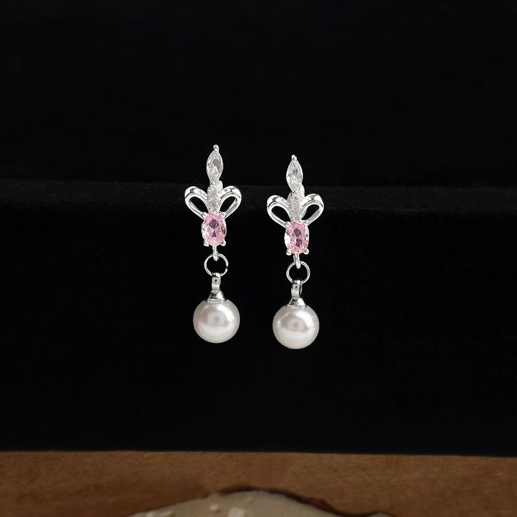A廠【7328】原創鳶尾花微鑲鋯石925銀針長水滴珍珠耳飾清新甜美耳環女 26.01-2