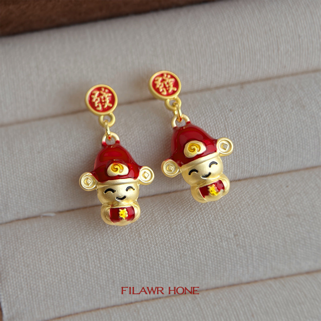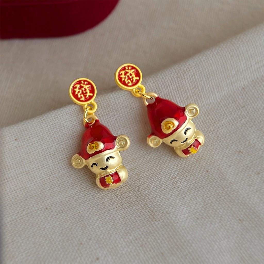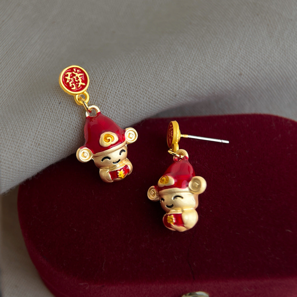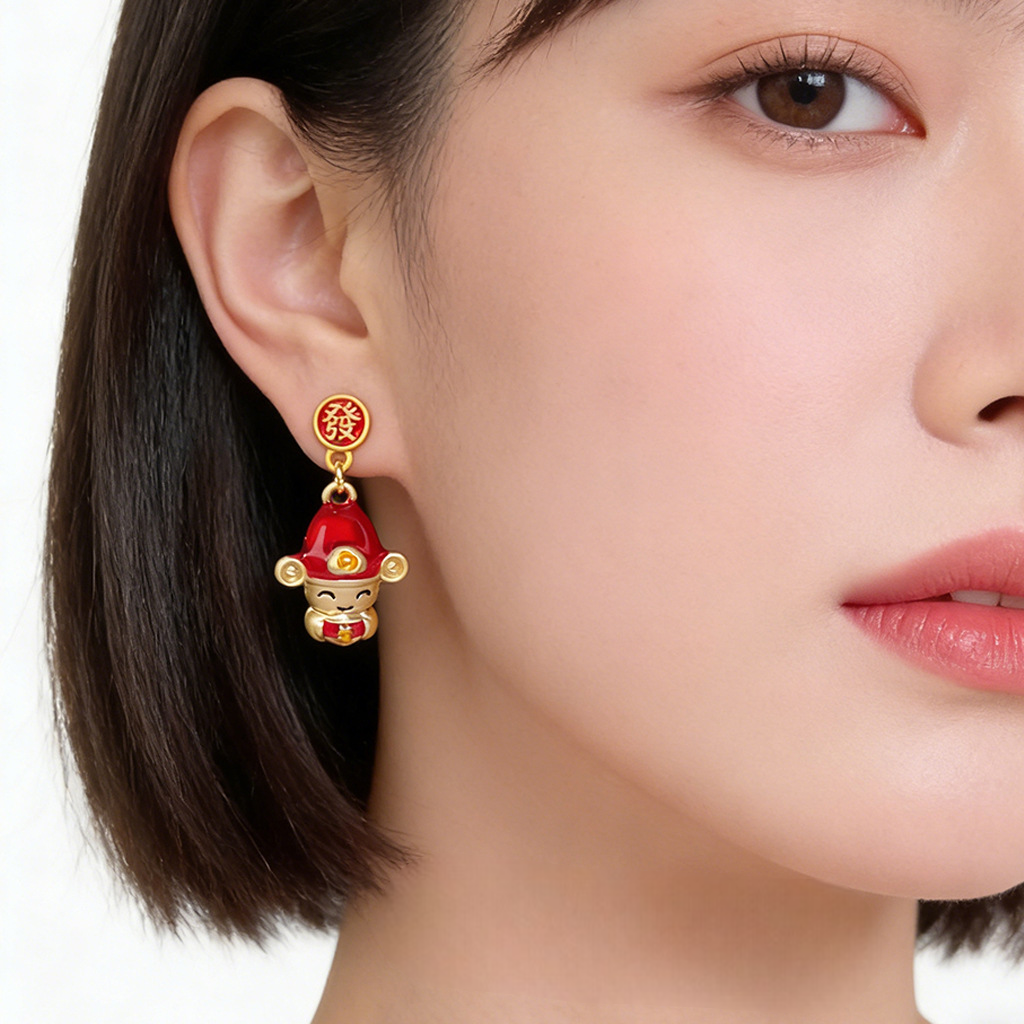 A廠【7341】接財神啦~!新年大吉琺瑯滴釉彩繪過年氛圍好寓意耳環女 26.01-2