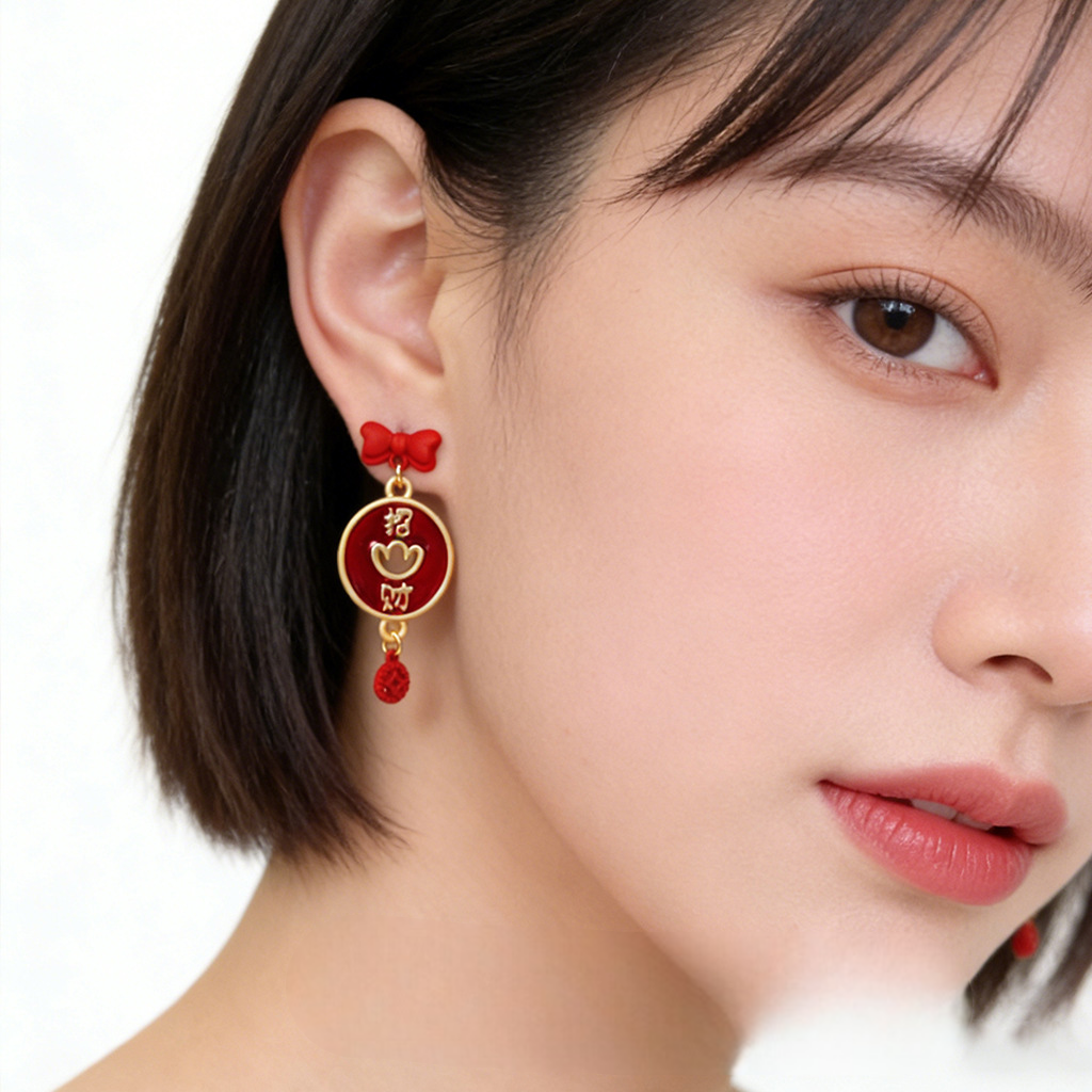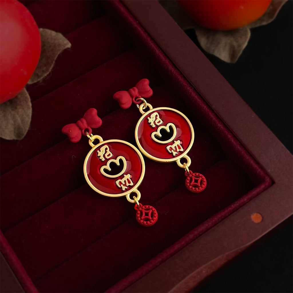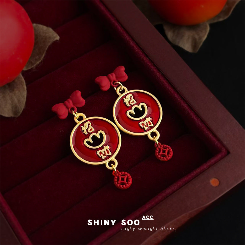 A廠【7345】馬年新款琺瑯滴釉紅色元寶財源廣進民族風小眾耳飾耳環飾品女 26.01-2