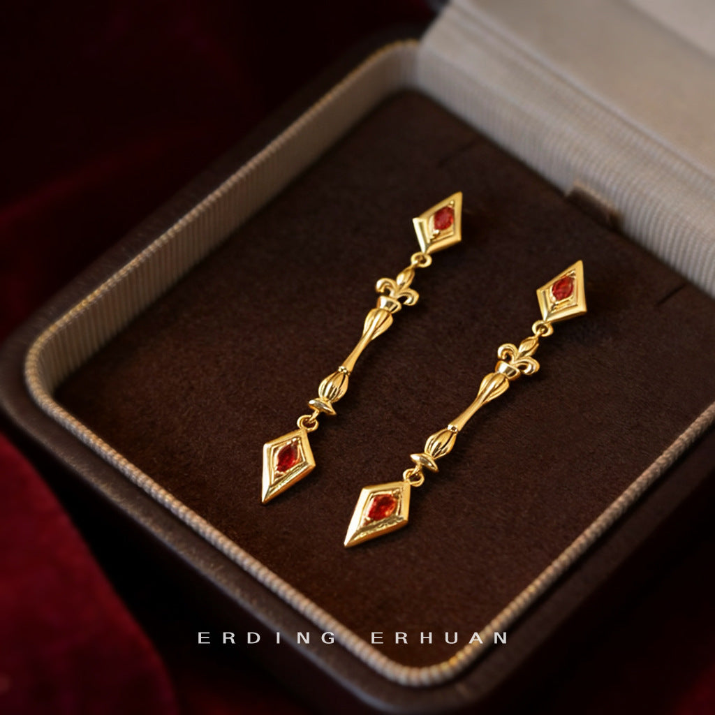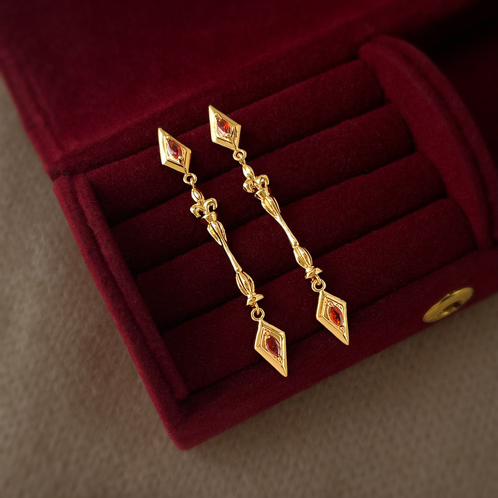 A廠【7385】原創鳶尾花時尚高級感長款流蘇微鑲鋯石氣質輕奢風新款耳環女 26.01-4