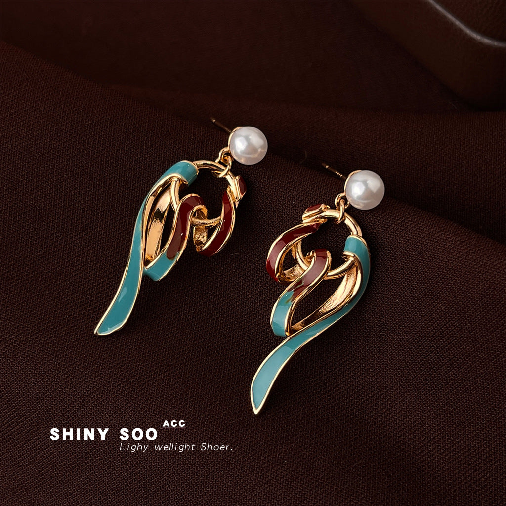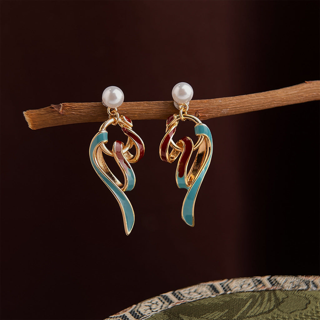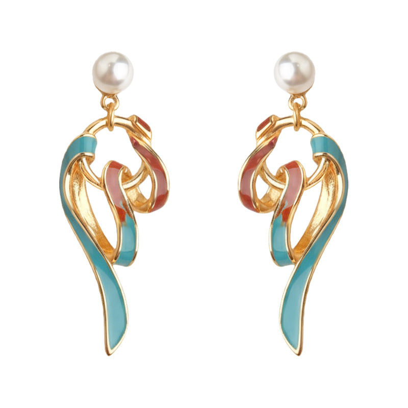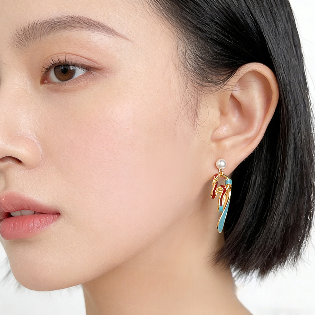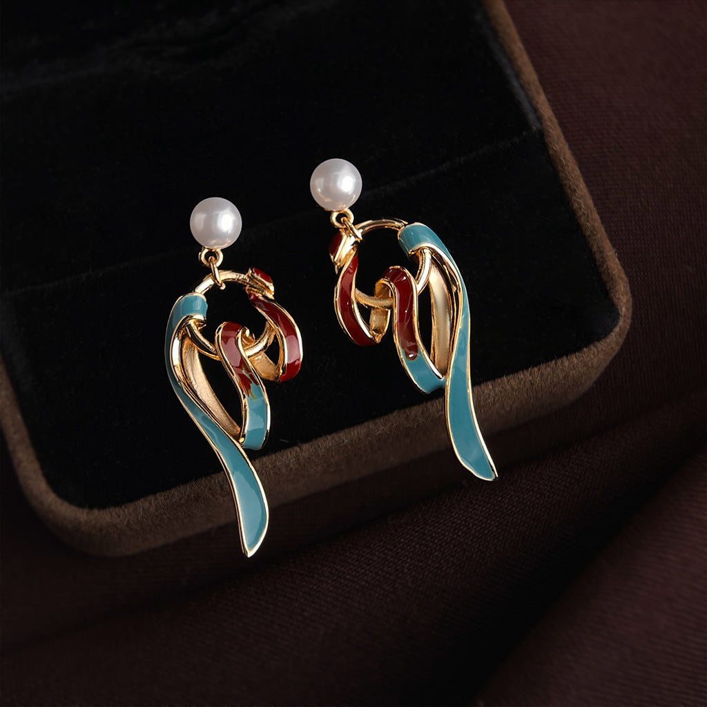 A廠【7386】敦煌繫飄帶原創小眾設計時尚國潮高級感琺瑯彩繪手工滴釉耳飾耳環 26.01-4