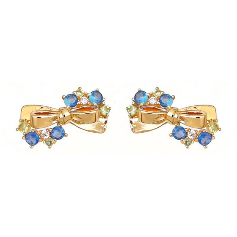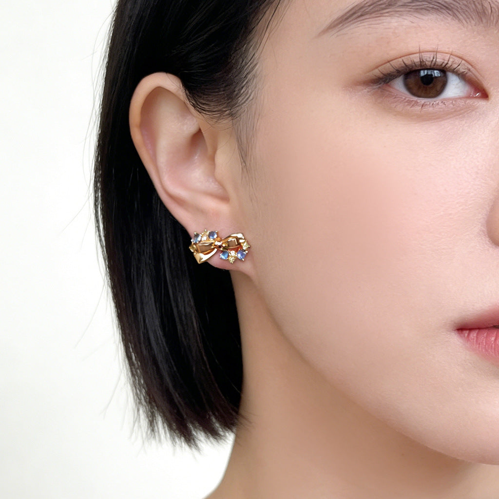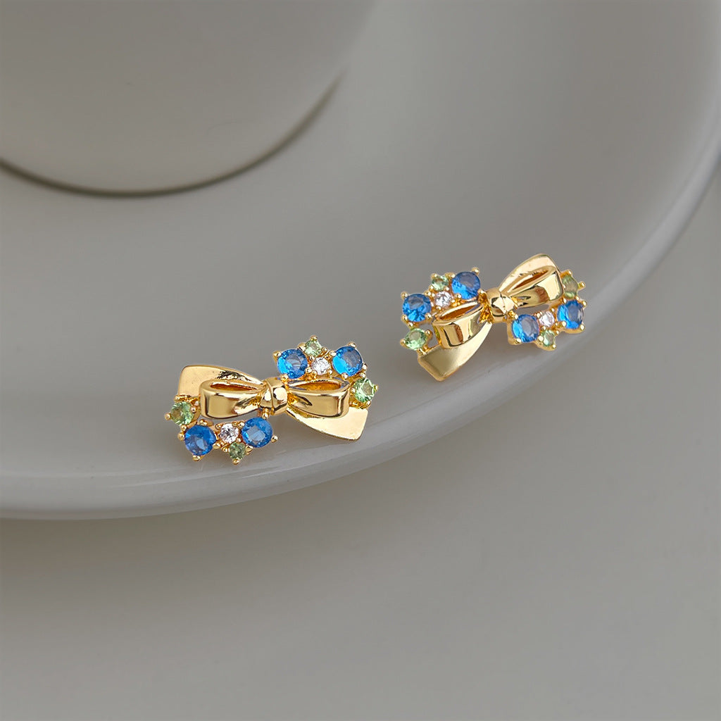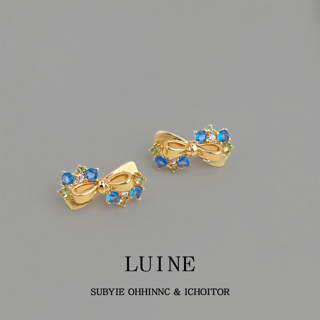 A廠【7441】原創海藍寶色鋯石蝴蝶結銀針耳環時尚高級感新款耳環女 26.03-4