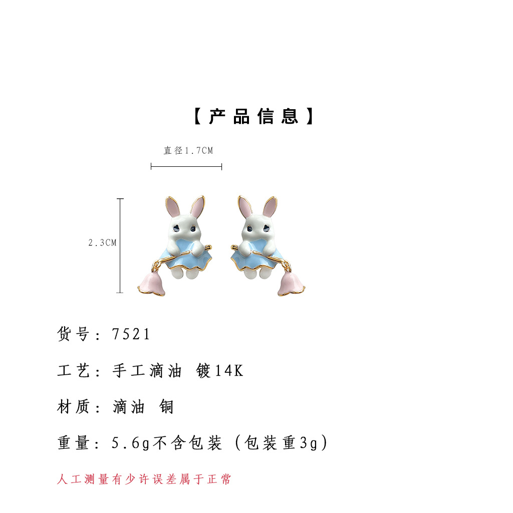 A廠【7521】兔子精靈~原創設計琺瑯滴釉手工彩繪清新甜美童話創意可愛耳飾耳釘 26.04-4