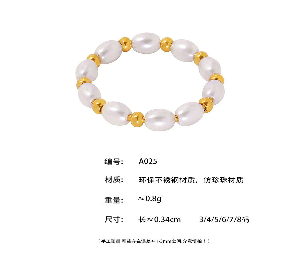 B廠【A025】歐美跨國ins輕奢簡約貝珠手工串珠戒指不鏽鋼鍍18k金百搭時尚飾品 26.01-2