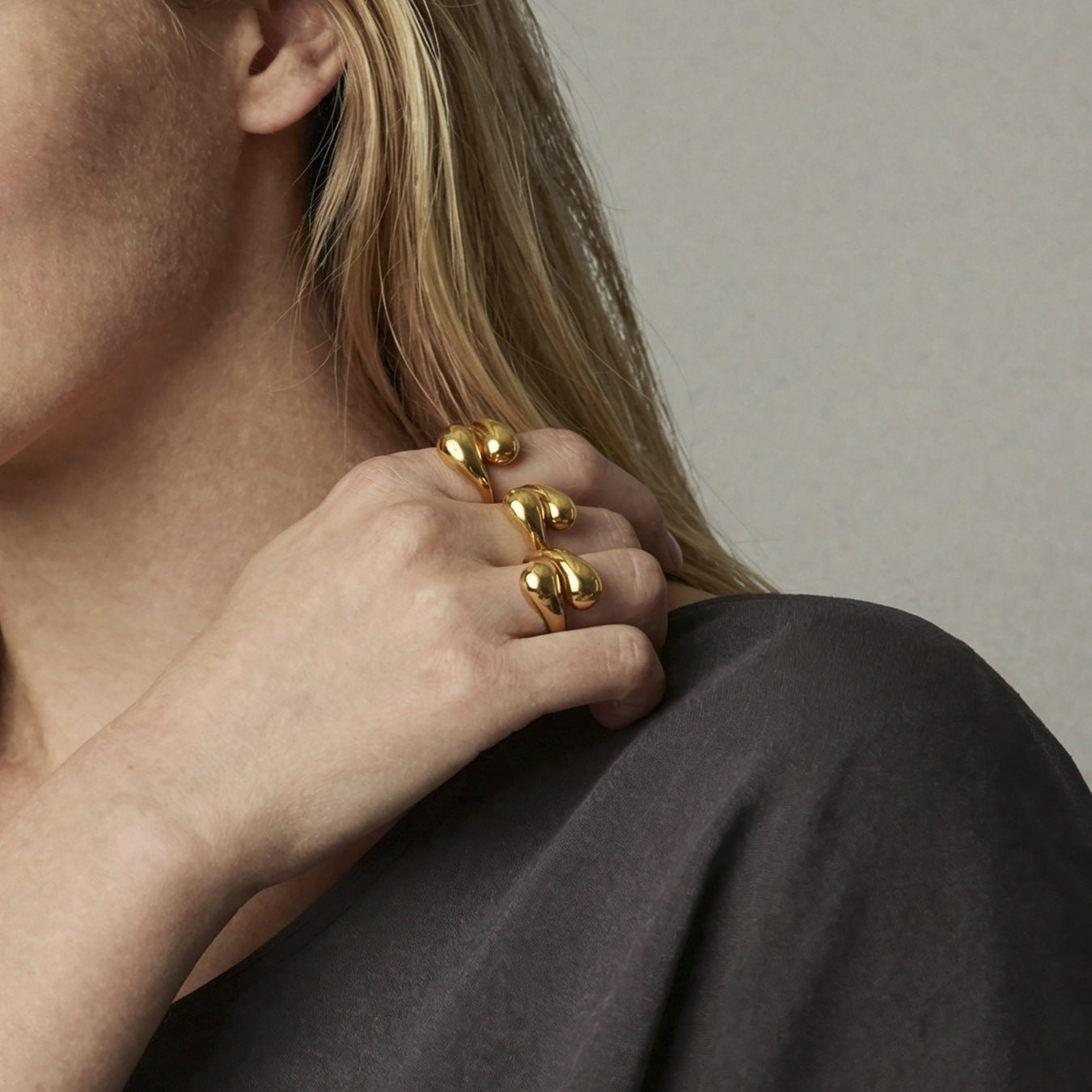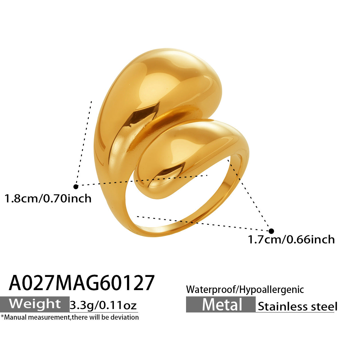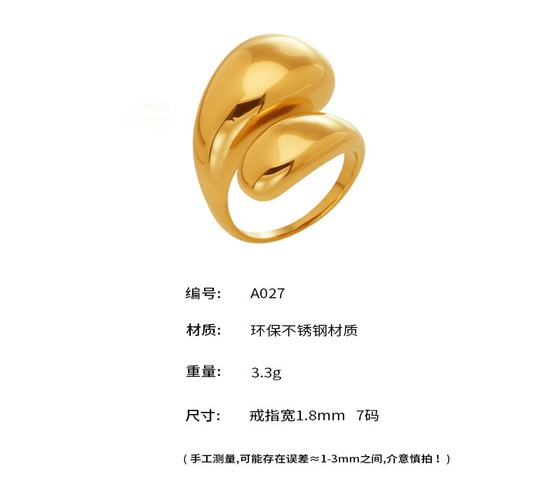 B廠【A027】歐美跨境ins小眾設計逗號水滴開口戒指不銹鋼鍍18k真金光面指環女 26.02-1