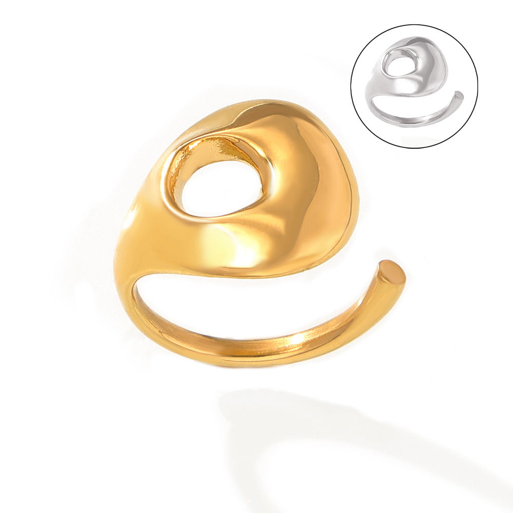 B廠【A030】Chic風新款跨境冷淡風弧面鏤空開口戒指法式復古時尚百搭鈦鋼指環 24.06-1