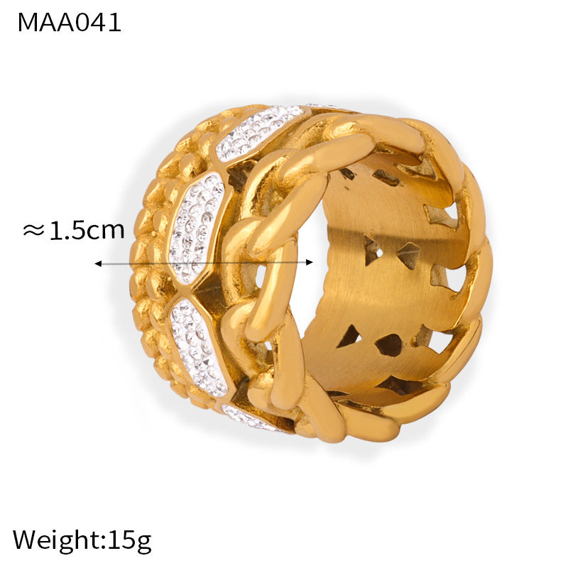B廠【A040-2】韓國版簡約時尚鈦鋼鍍金戒指超閃排鑽食指戒女多款鑲鑽幾何指環飾品 24.03-1
