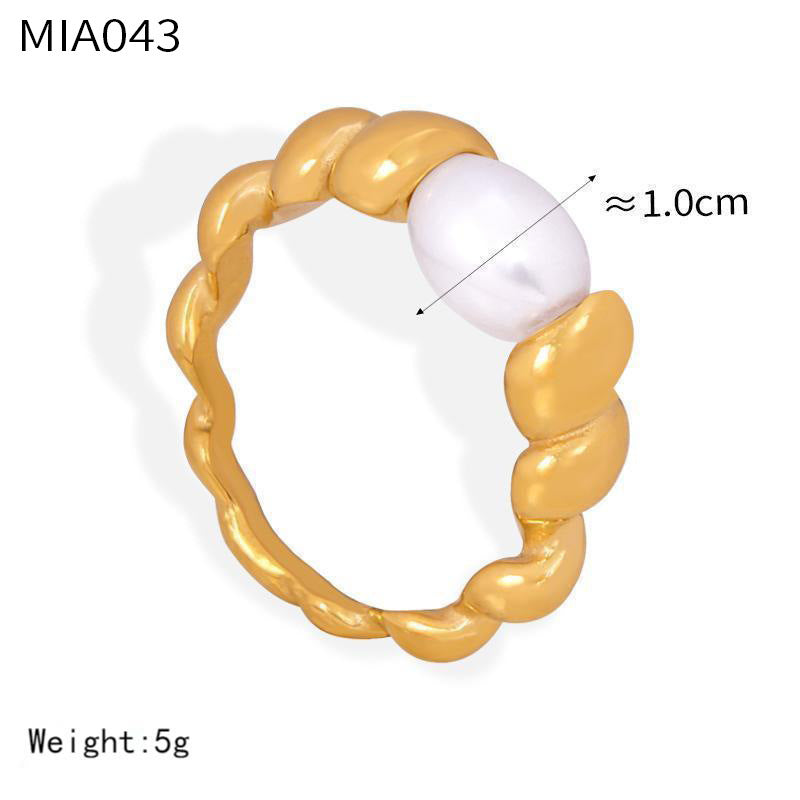 B廠【A043】港風個性氣質麻花漸層戒指女鈦鋼鍍18k金鑲嵌淡水珍珠食指戒指環 24.03-1
