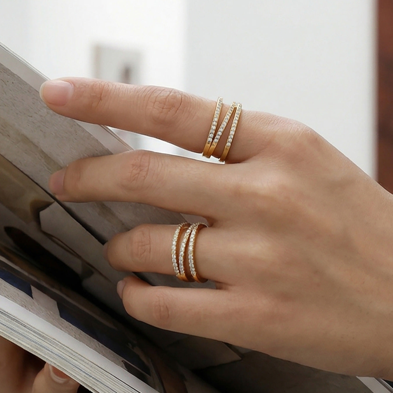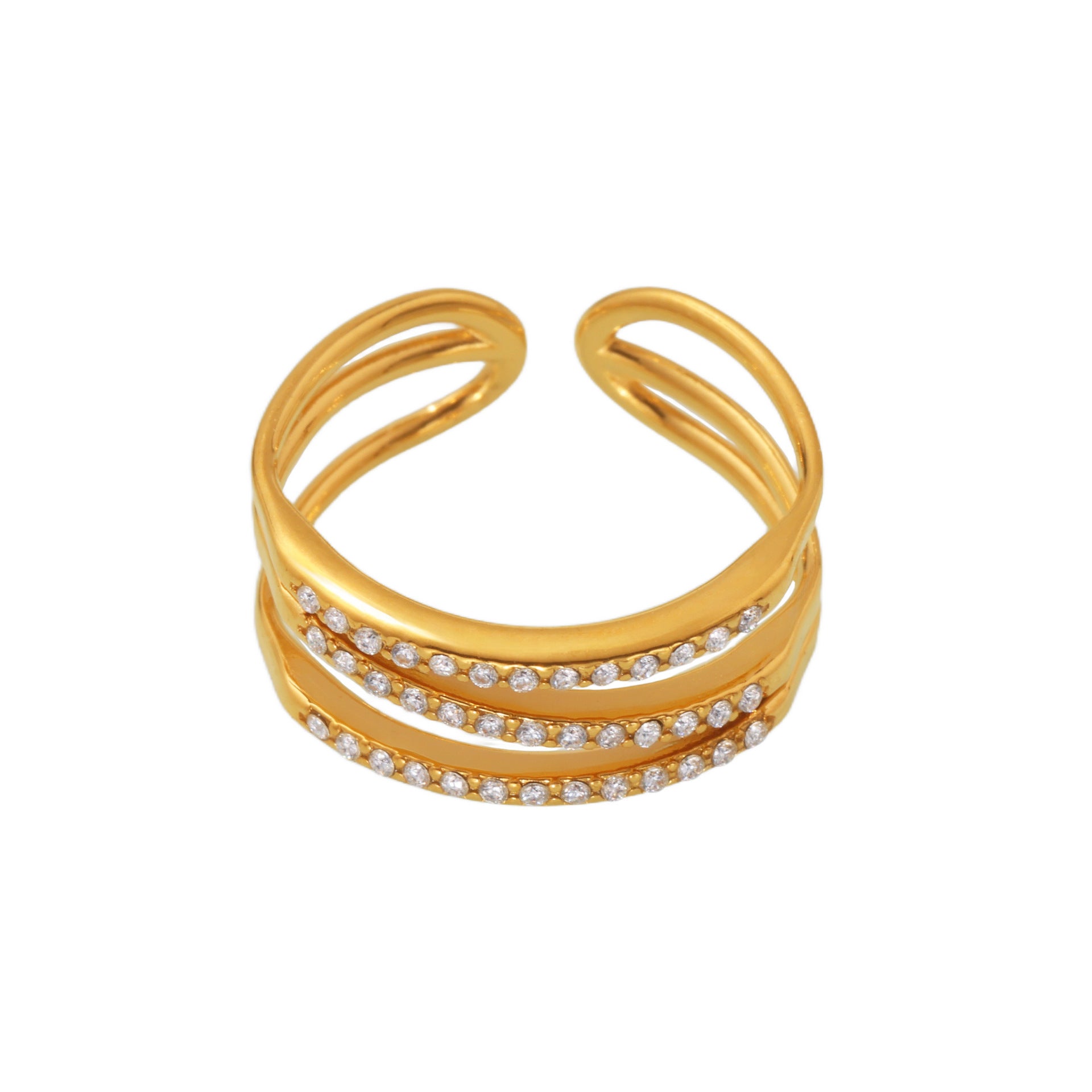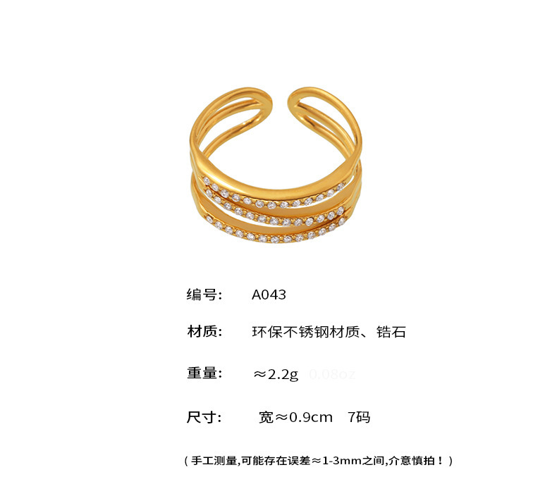B廠【A043】跨國簡約設計微鑲鋯石三層開口指環輕奢風時尚百搭戒指不鏽鋼鍍金 26.02-1