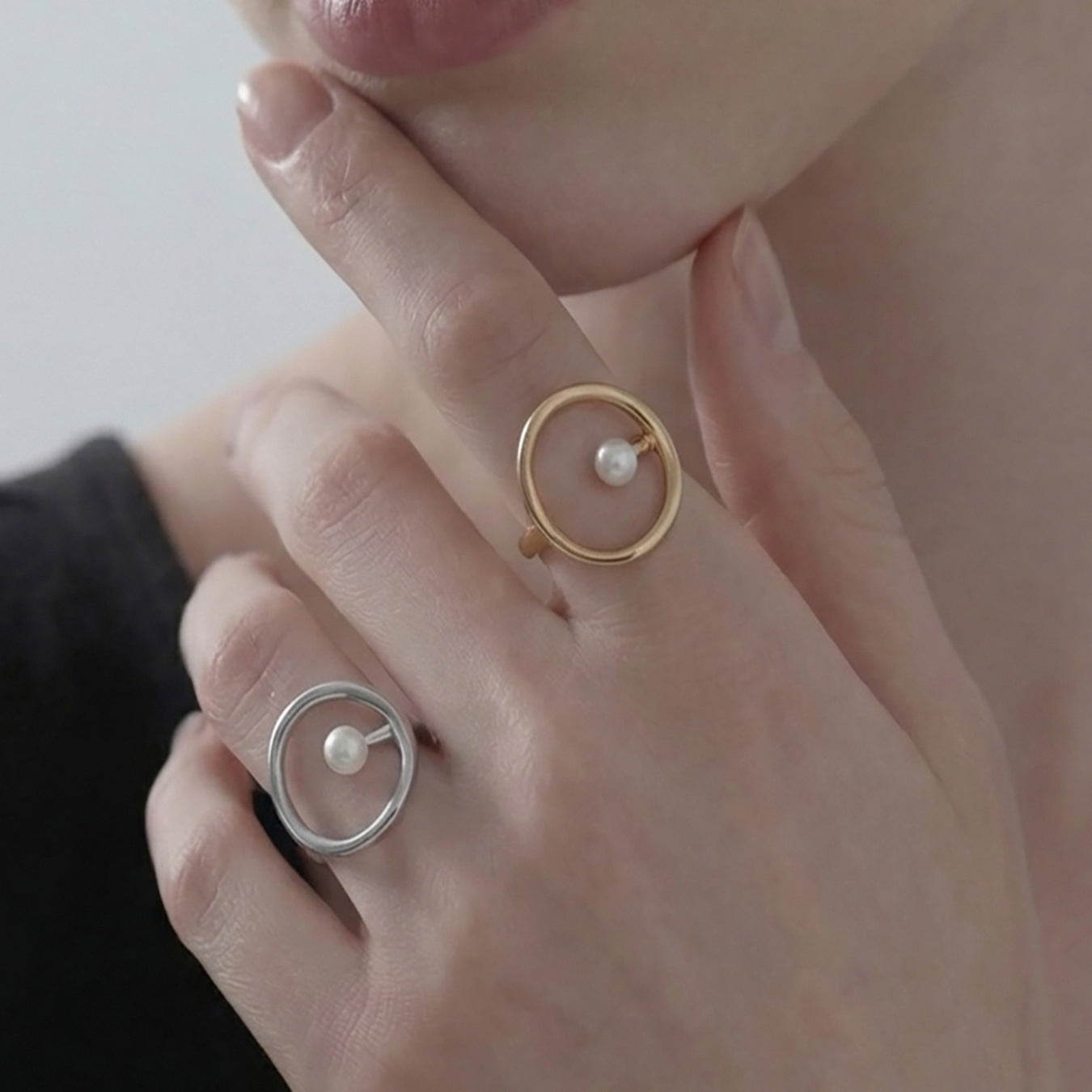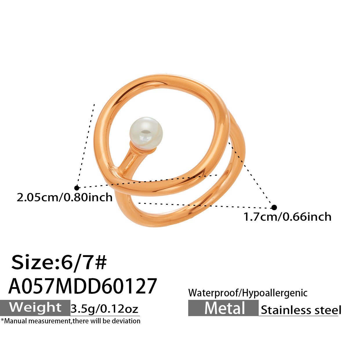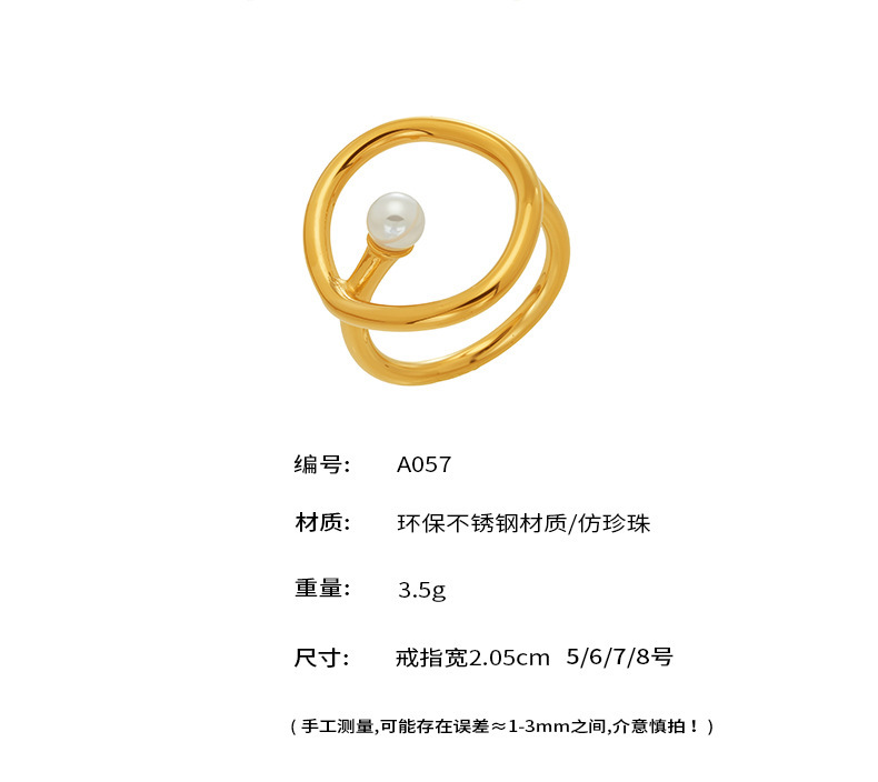 B廠【A057】歐美時尚marka戒指個性仿珍珠幾何戒指不鏽鋼鍍18k真金飾品不掉色 26.02-1