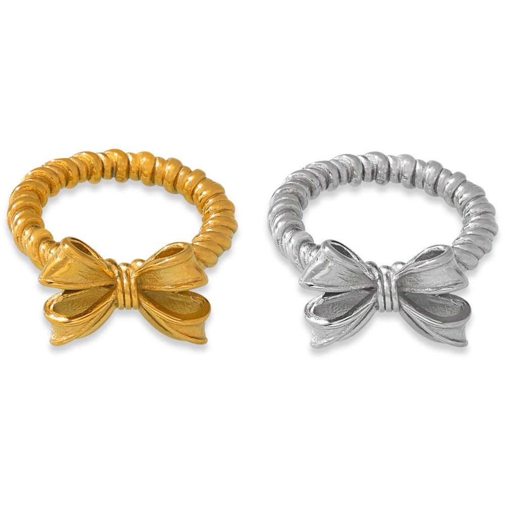 B廠【A064】2024年小眾優雅時尚蝴蝶結戒指女輕奢鈦鋼鍍金網紅指環冷淡風飾品 24.06-1
