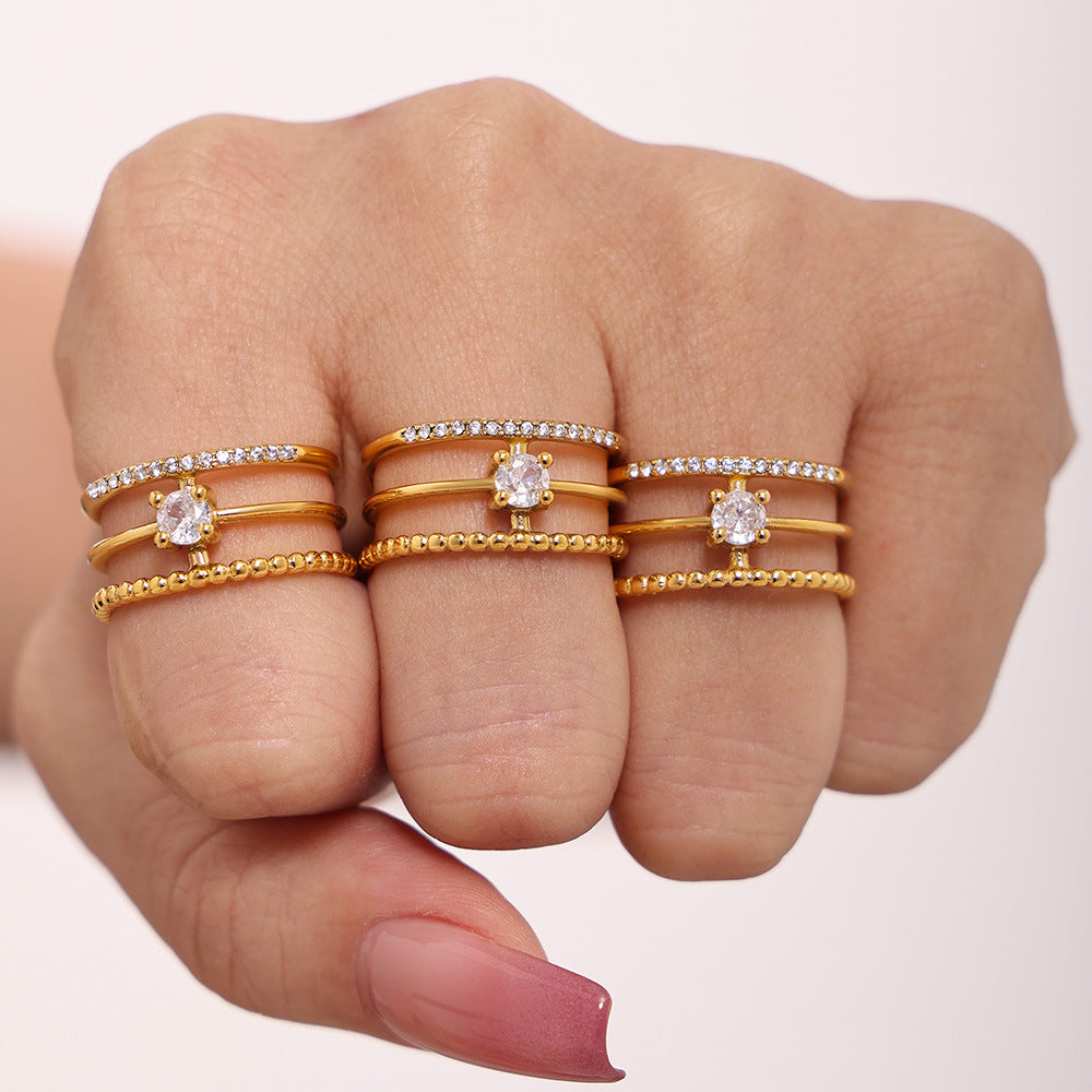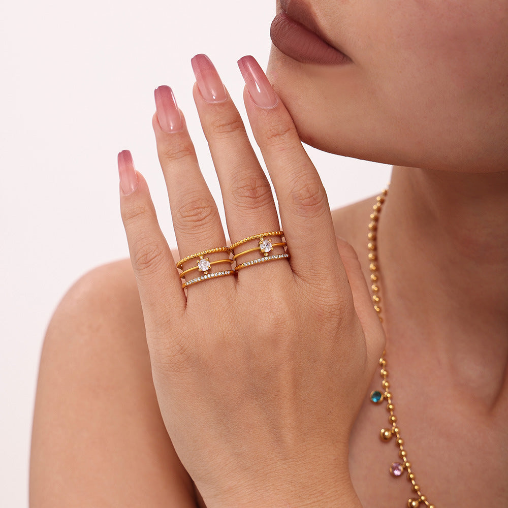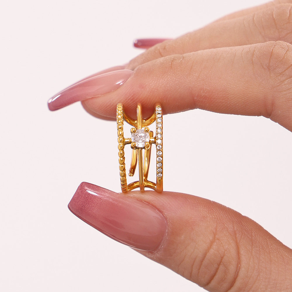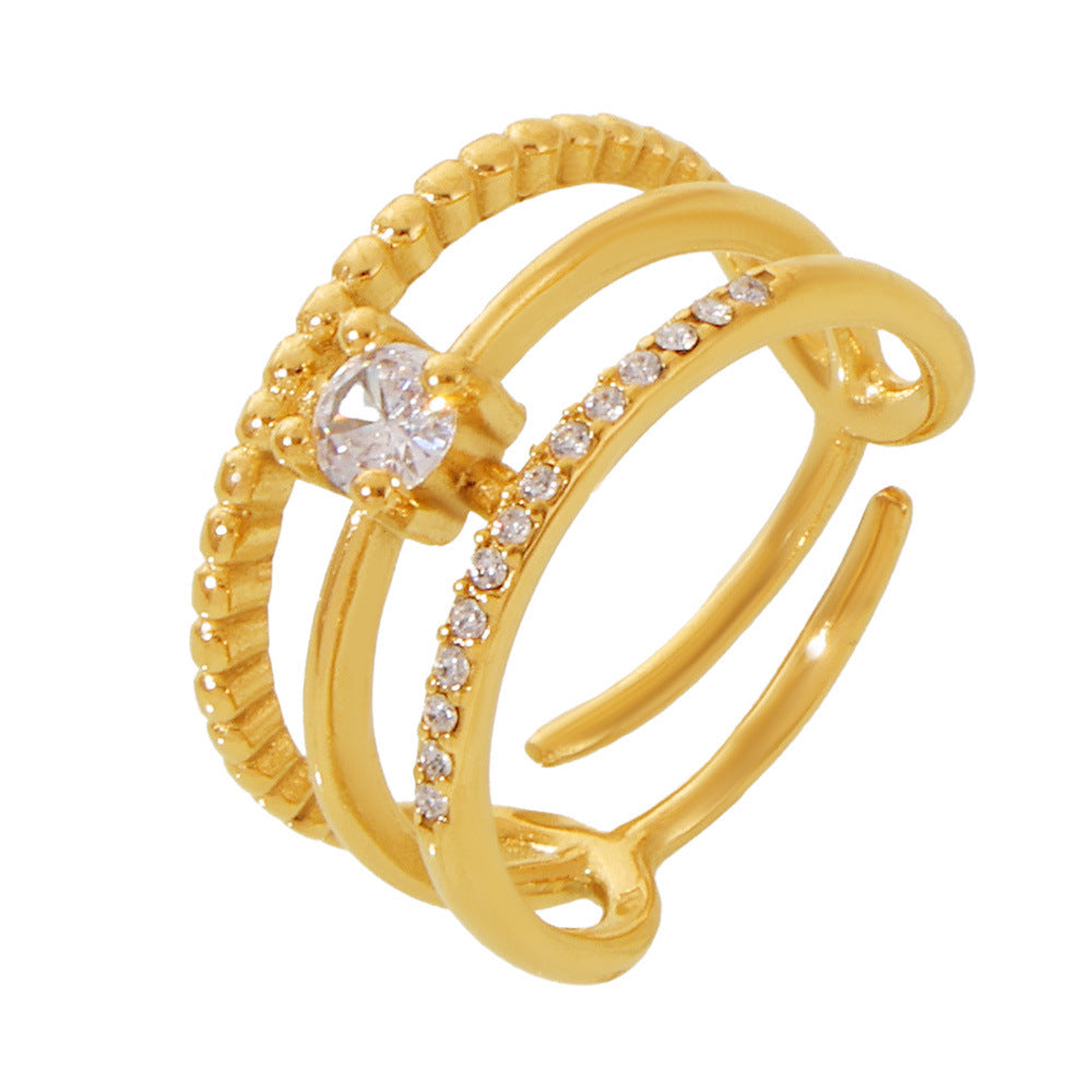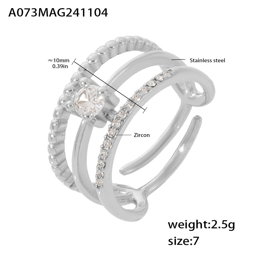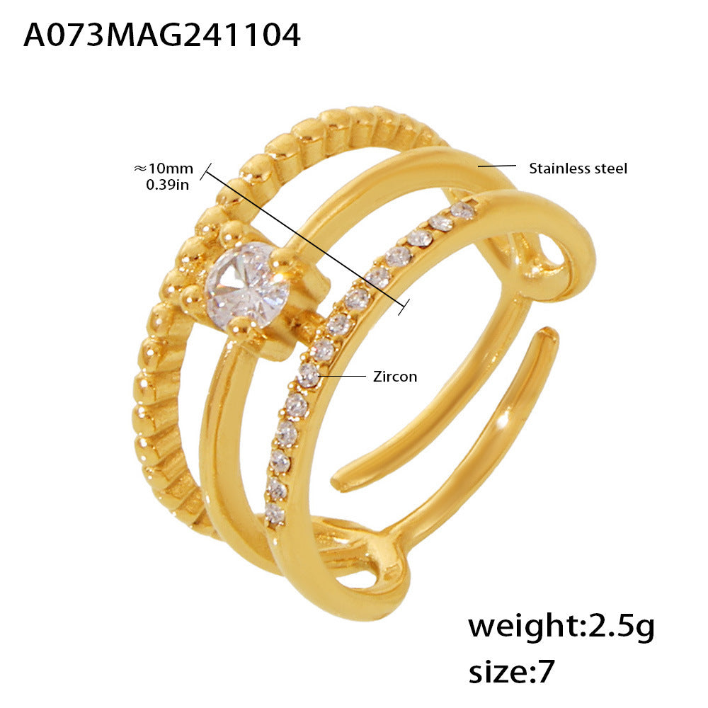 B廠【A073】創意三層鑲鋯石戒指開口可調整多層設計不鏽鋼鍍金食指戒女 24.11-2