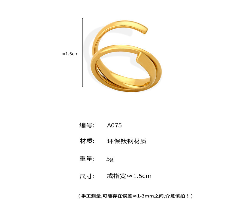 B廠【A075】日韓線條設計感氣質不掉色指環女時尚輕奢小眾鈦鋼18K金雙圈戒指 24.03-2