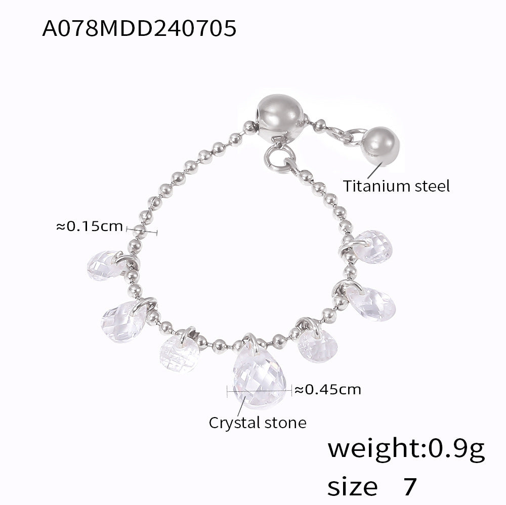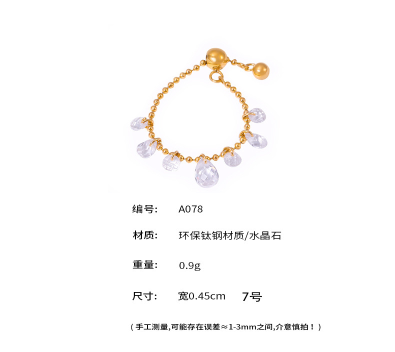 B廠【A078】時尚跨國小眾設計流蘇七顆水晶石吊墜鈦鋼材質可抽拉指環創意手飾 24.07-2
