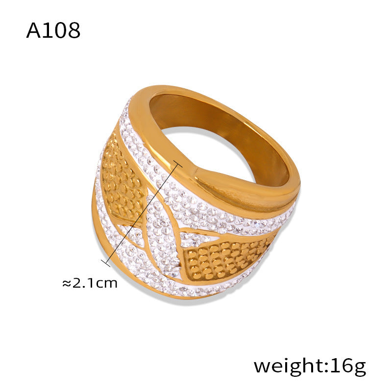 B廠【A108-A690】歐美嘻哈風個性獨特簡約小眾輕奢設計感飾品幾何鑲鑽鈦鋼鍍金戒指 24.04-2