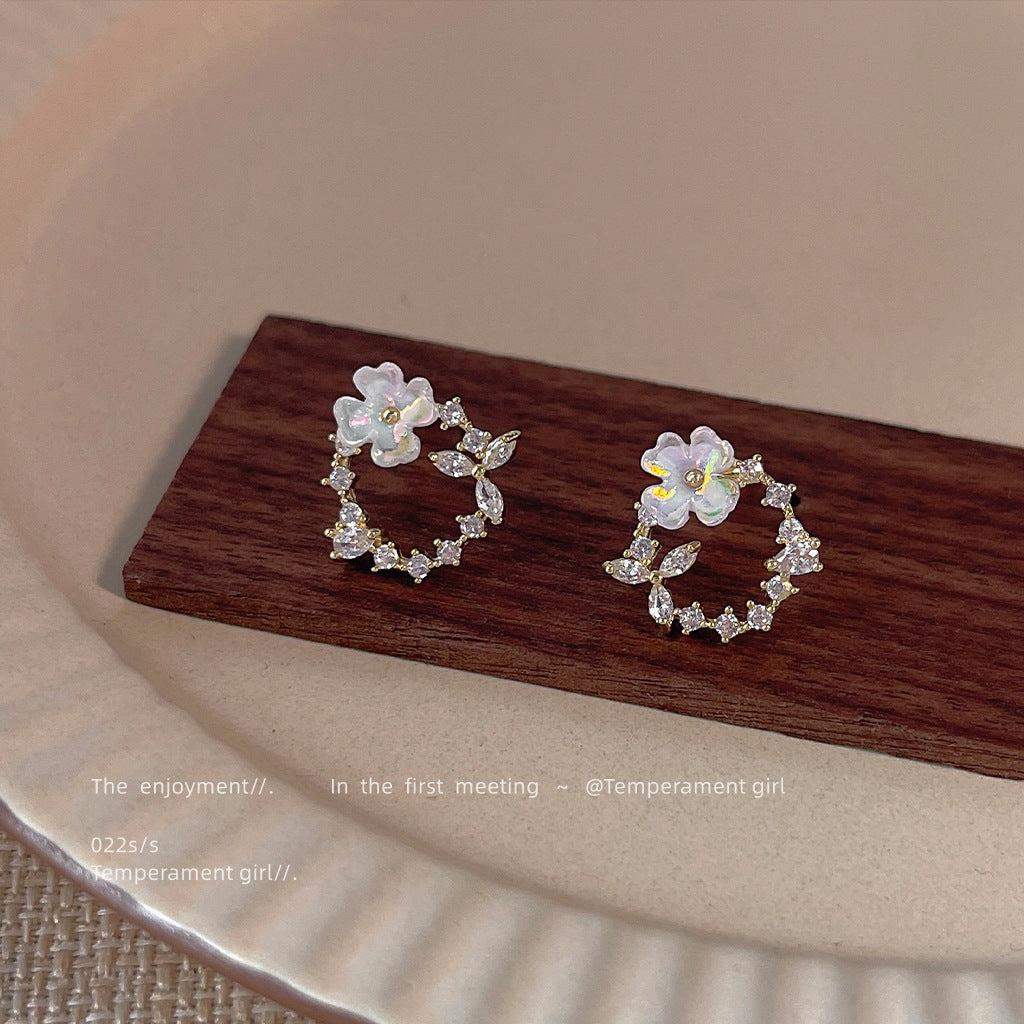 C廠【A155】微鑲鋯石甜美清新花環通勤小耳環設計感小花大氣高級感氣質耳飾品 24.10-4