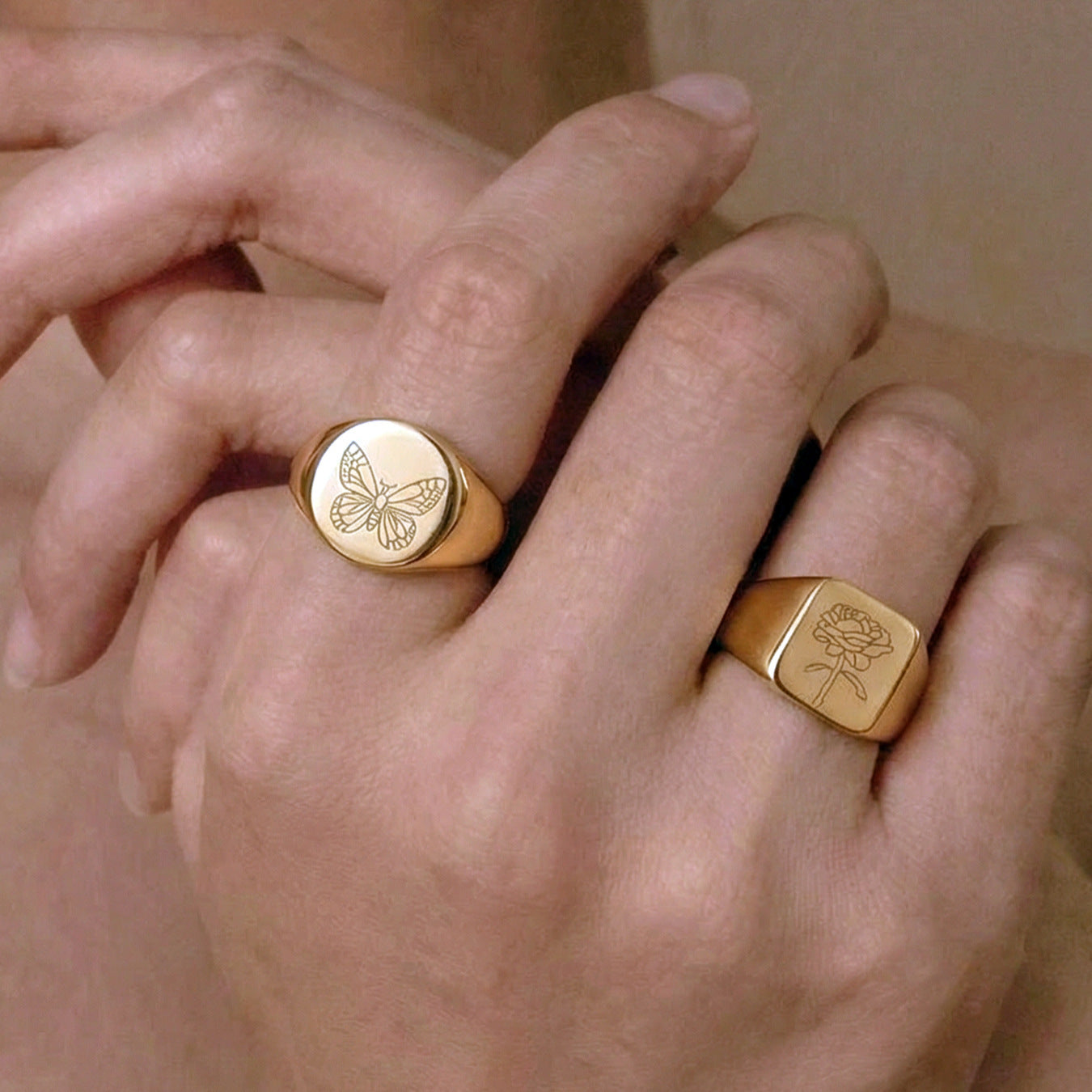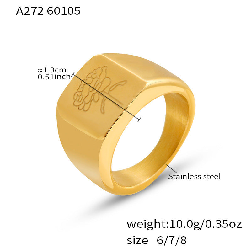 B廠【A271】不鏽鋼鍍18k真金雕刻蝴蝶牡丹花朵戒指ins風小眾輕奢設計感手環女 26.01-1