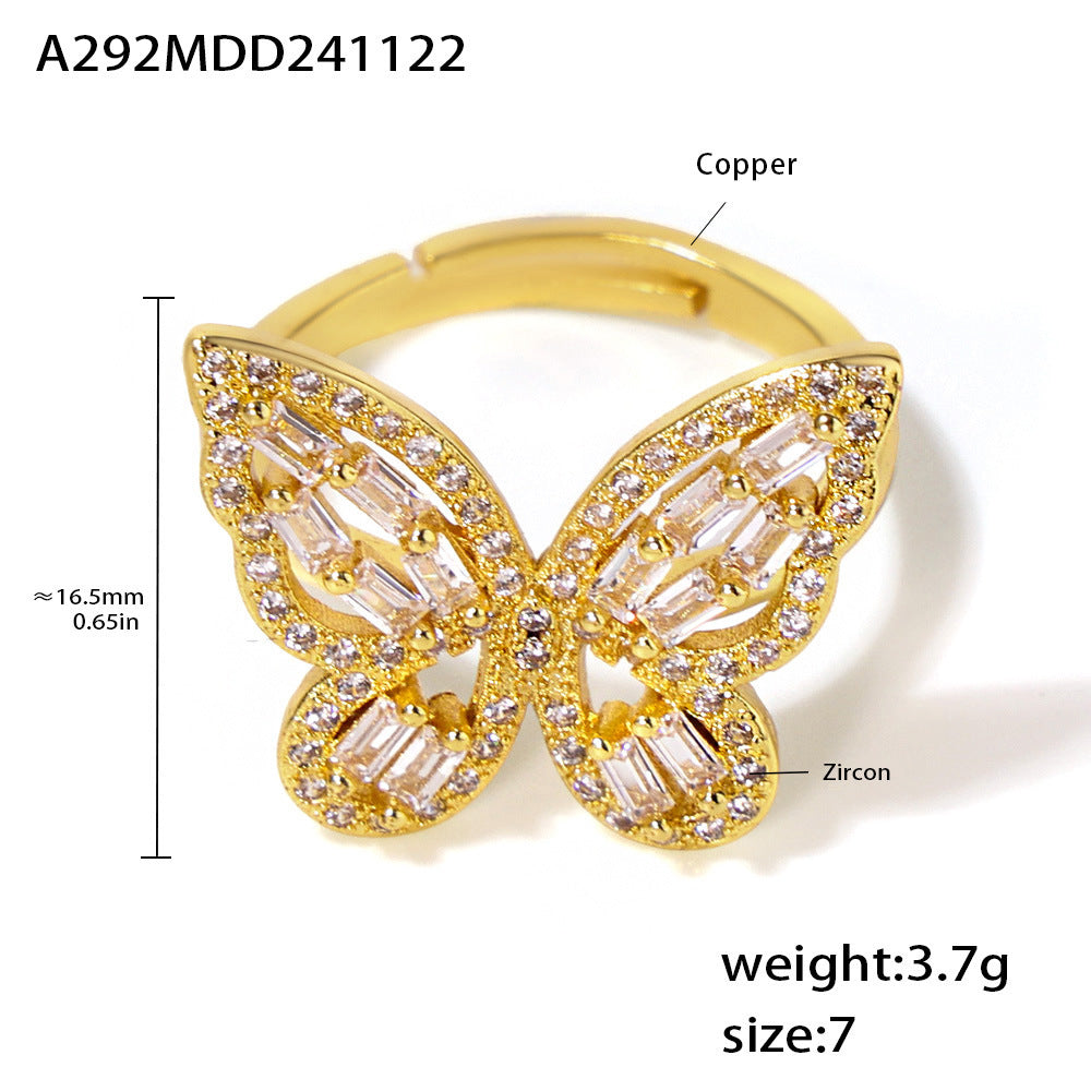 B廠【A292】蝴蝶仙子鋯石戒指時尚個性銅鍍18K金小眾開口戒指 24.11-5
