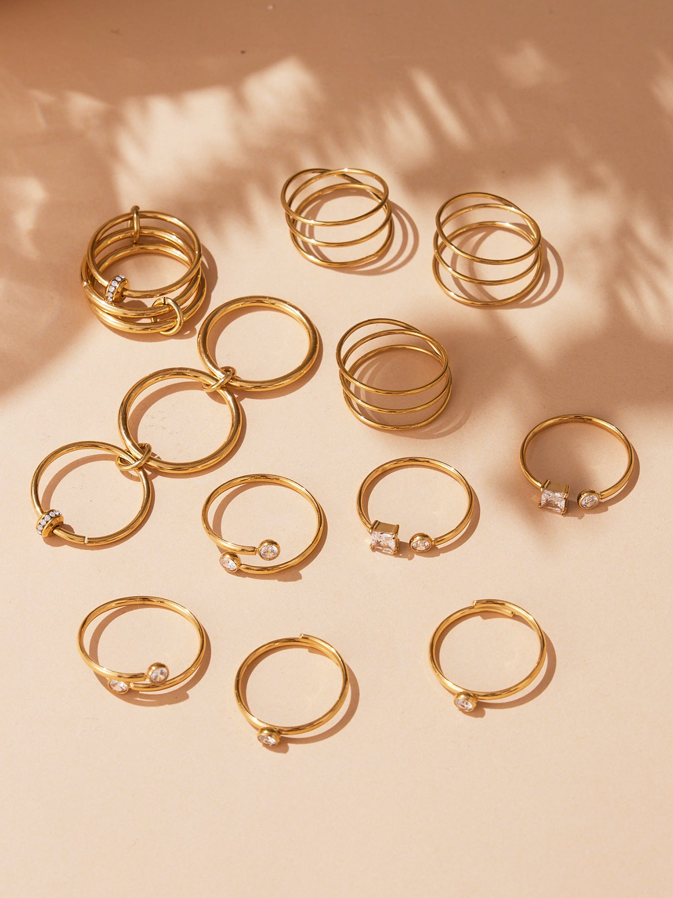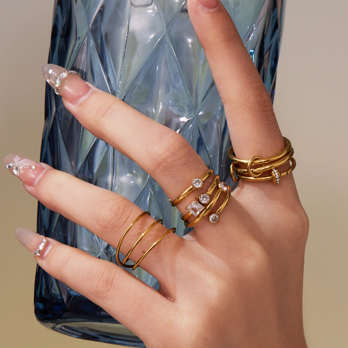 B廠【A309】超閃5A鋯石小鑽尾戒三件組戒指不鏽鋼18k鍍金飾品跨境rings 25.10-1