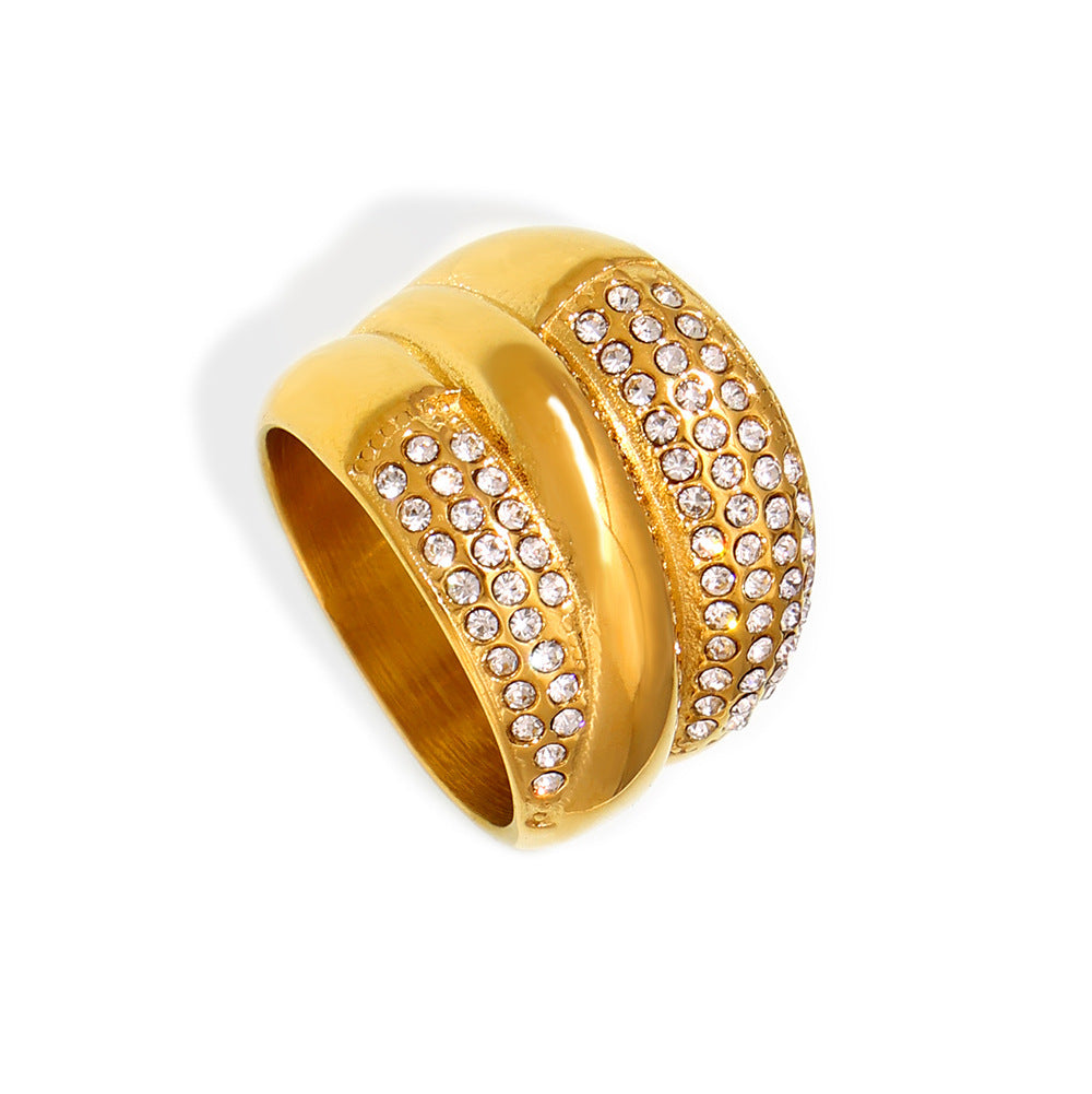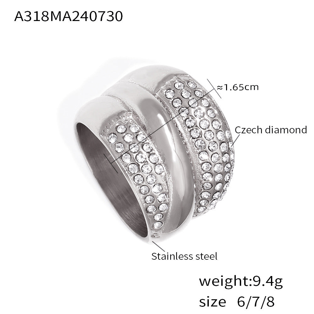 B廠【A318】歐美跨境鑲鑽多層排鑽戒指嘻哈時尚設計新款指環不鏽鋼鍍18k真金 24.08-2