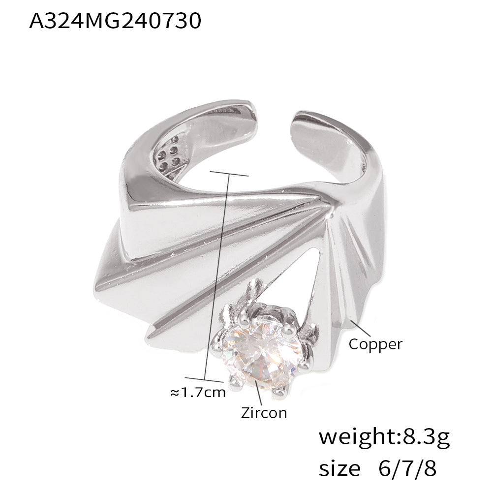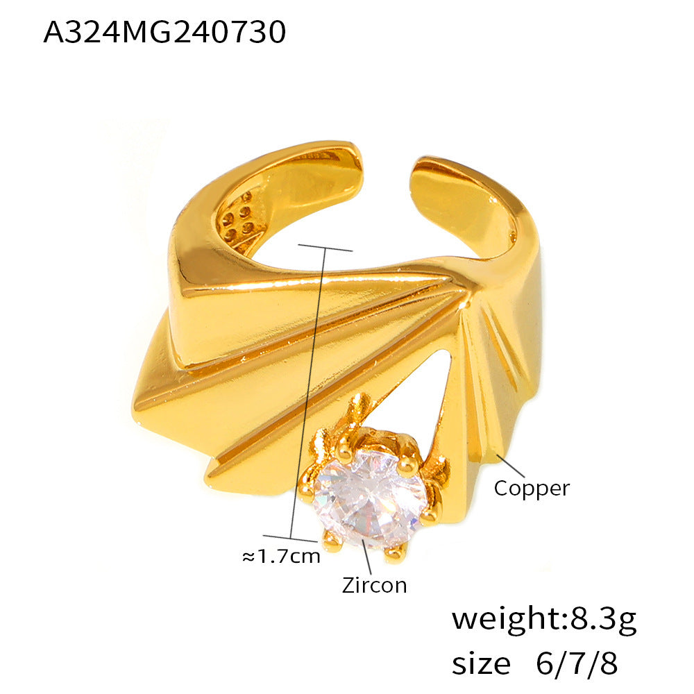 B廠【A324】亞馬遜新款不規則幾何鑲鋯石開口質感戒指復古設計銅鍍真金飾品女 24.08-2