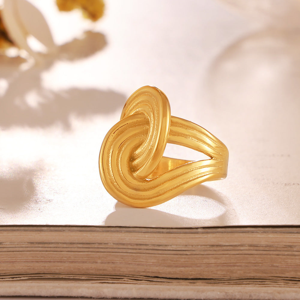 B廠【A325】跨國歐美風扭曲條紋纏繞戒指18k鍍真金復古時尚設計鈦鋼飾品 24.08-2