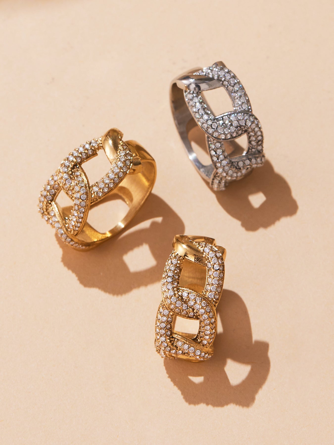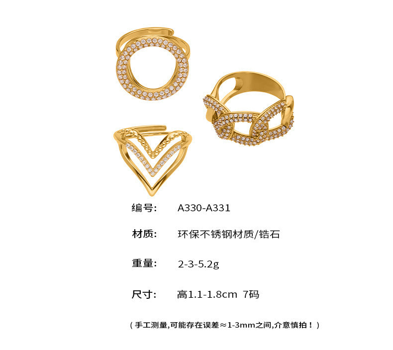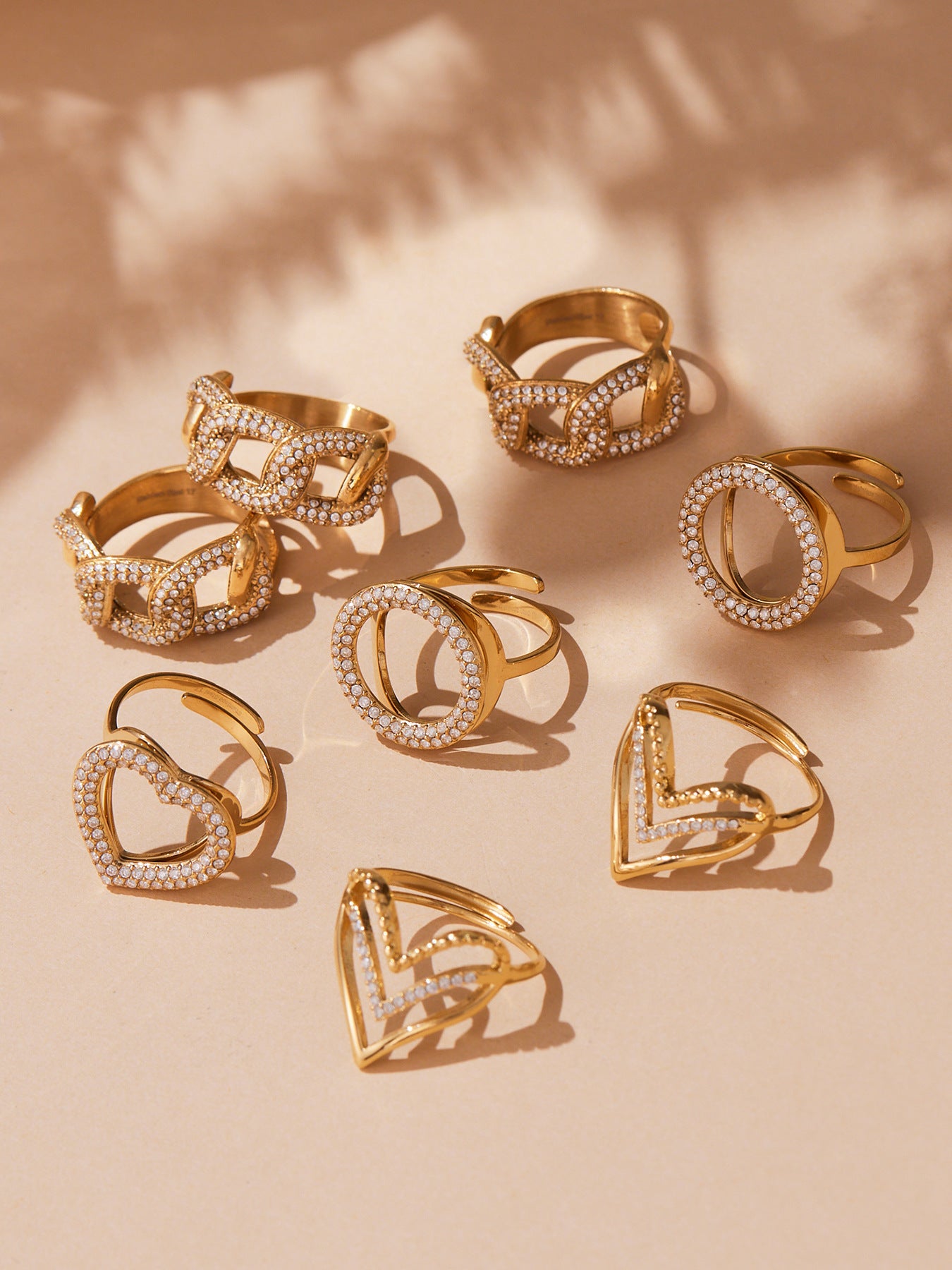 B廠【A330】法式小眾設計中性風不鏽鋼滿鑽鋯石愛心開口可調戒指尾戒 25.10-1