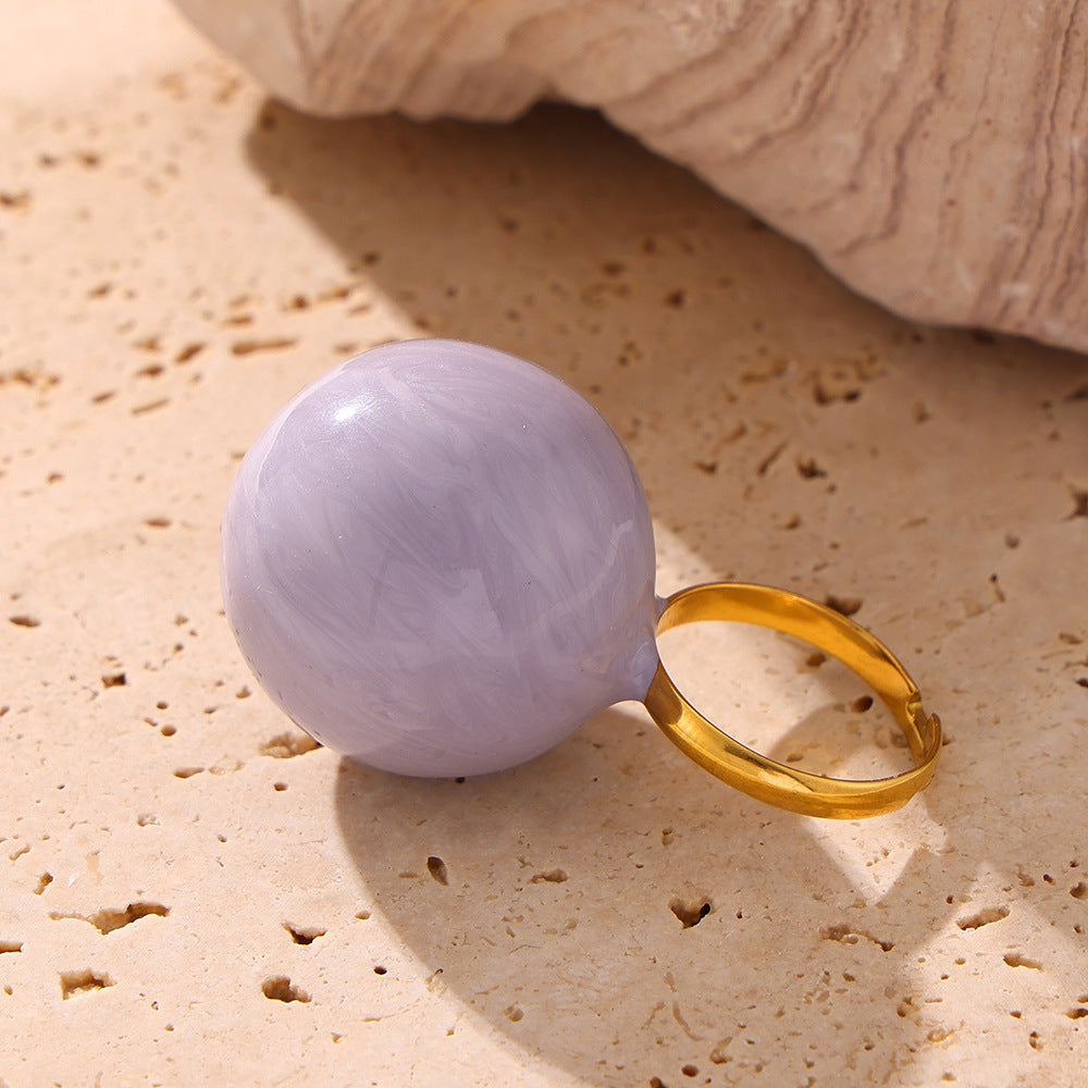 B廠【A337】歐美INS風砝碼彩釉大圓球戒指時髦氛圍感鈦鋼鍍18k金誇張設計指環 24.08-2