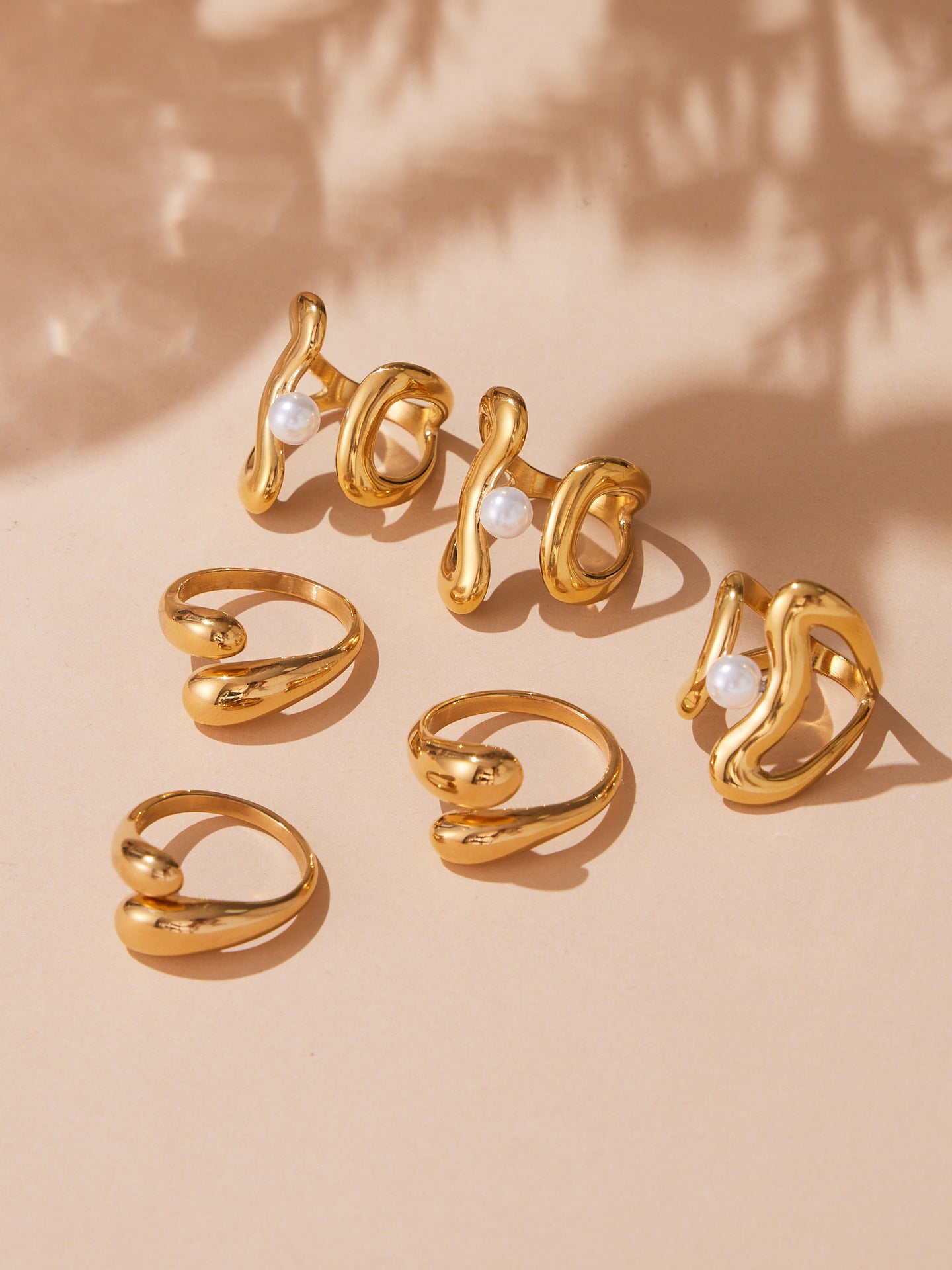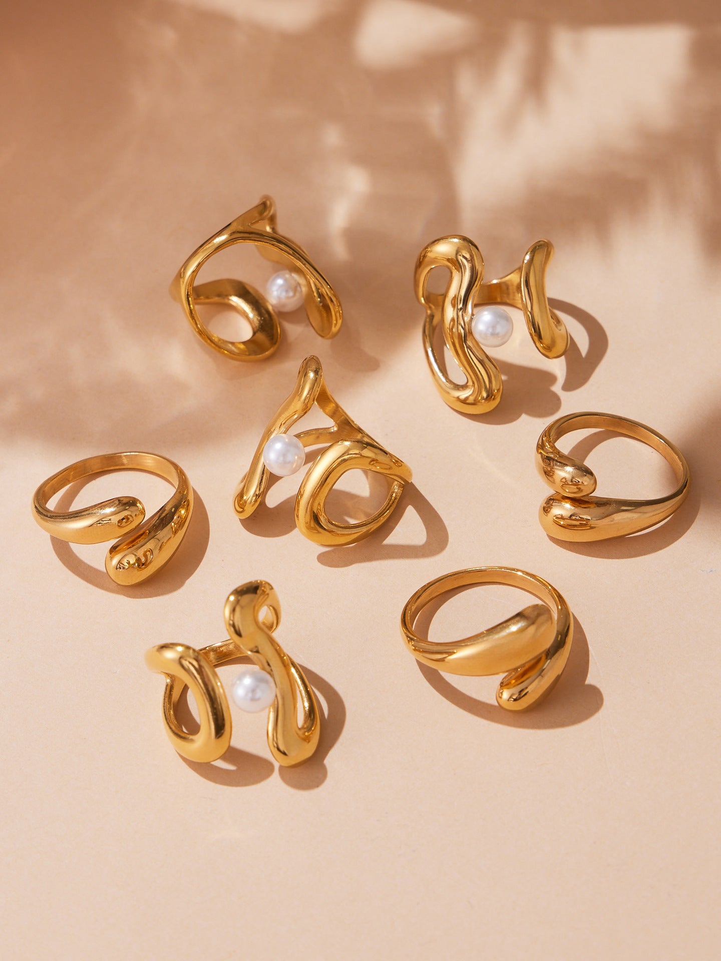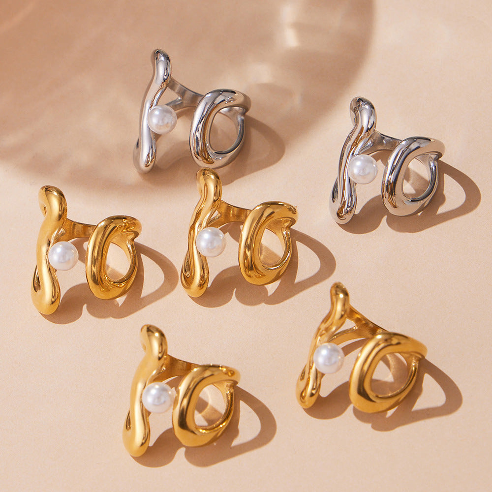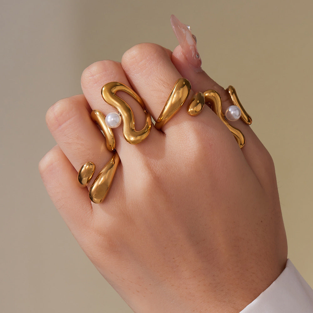 B廠【A388】冷淡風不鏽鋼幾何異形珍珠開口戒指個性時尚設計飾品不掉色 25.10-1