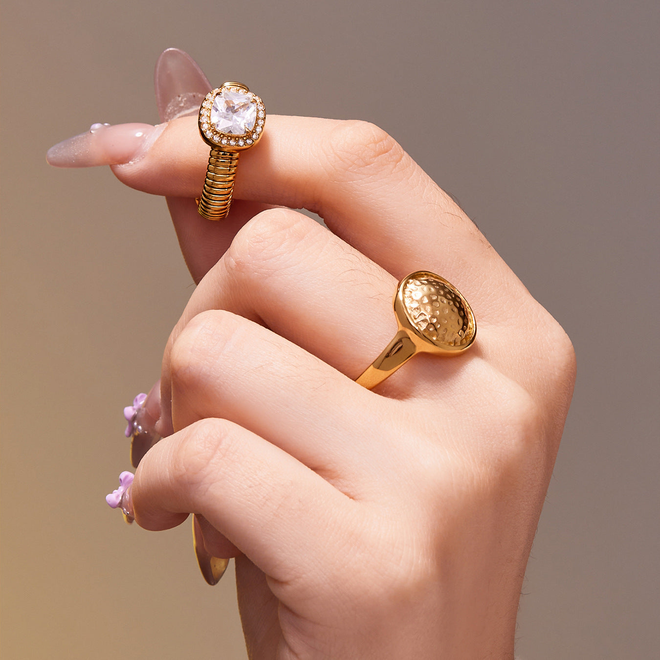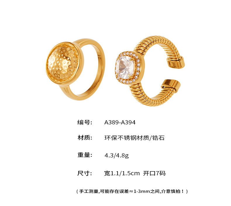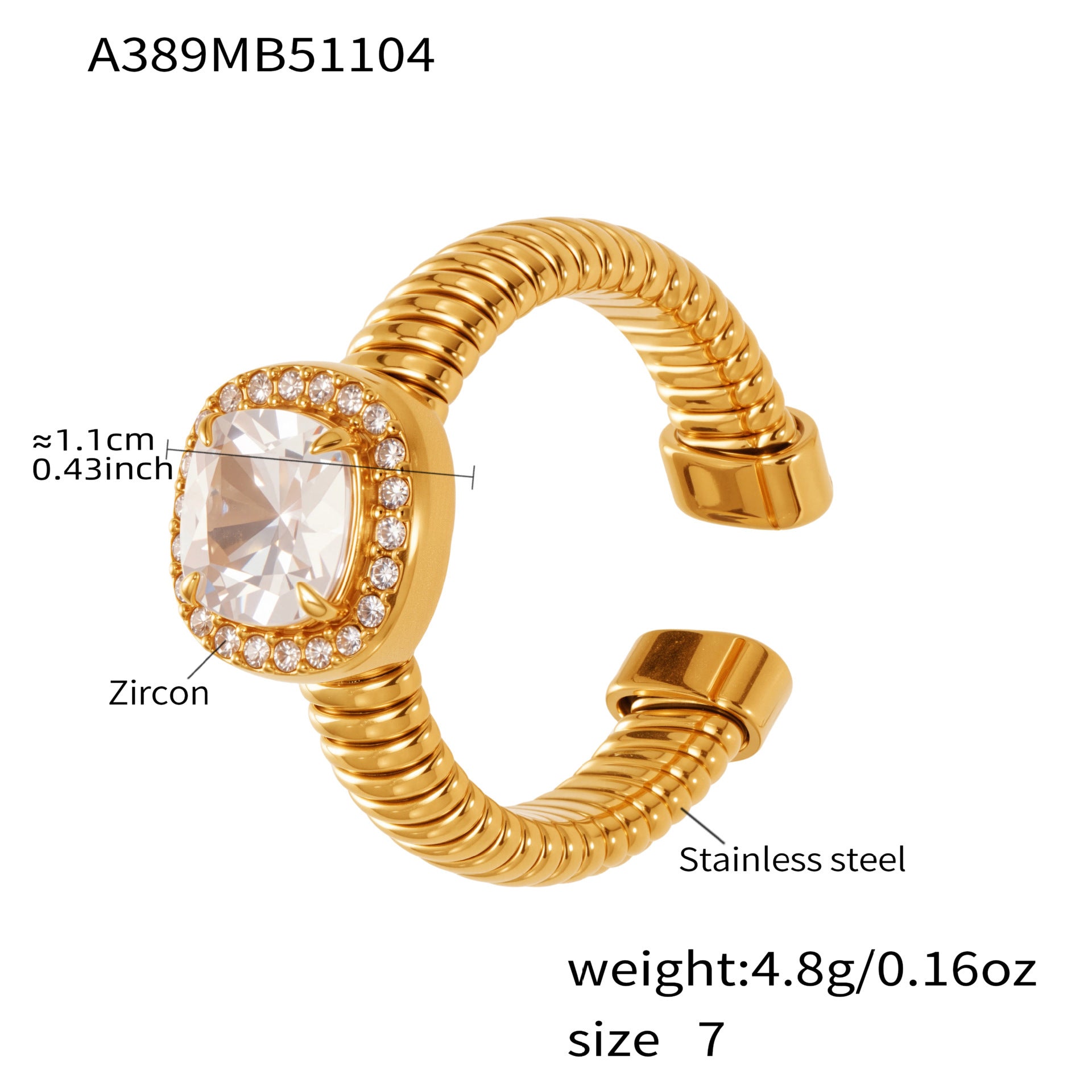 B廠【A389】米朵朵跨境熱賣新款不銹鋼方型5A鋯石開口戒指ins風簡約百搭指環 25.11-1