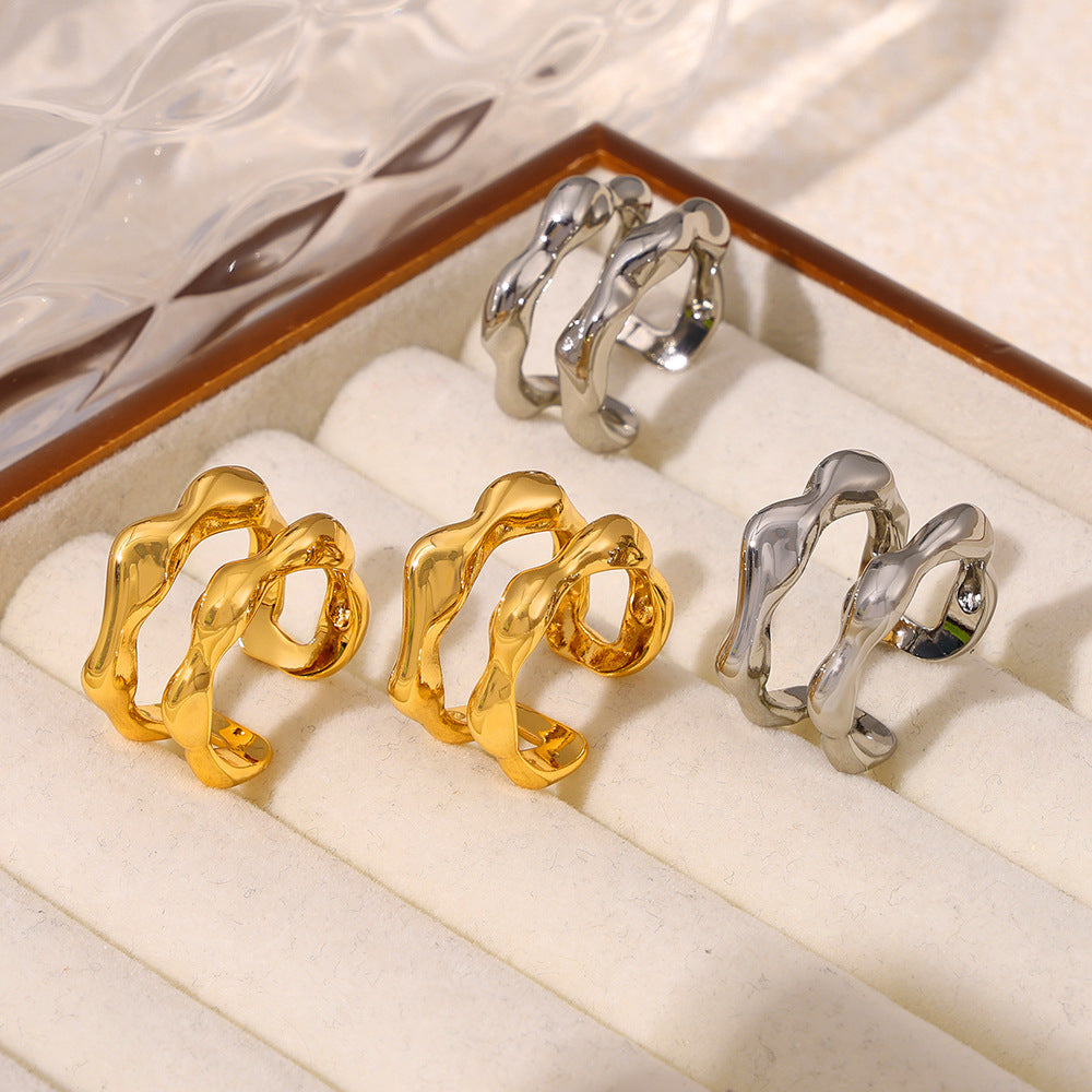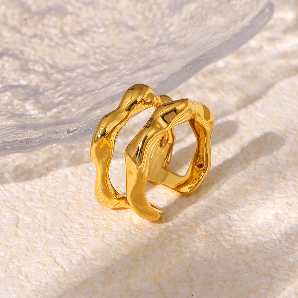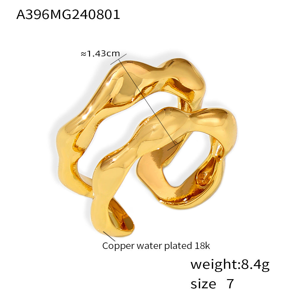 B廠【A396】歐美ins風不規則幾何線戒指開口鏤空設計銅材質鍍18k真金食指戒 24.08-2