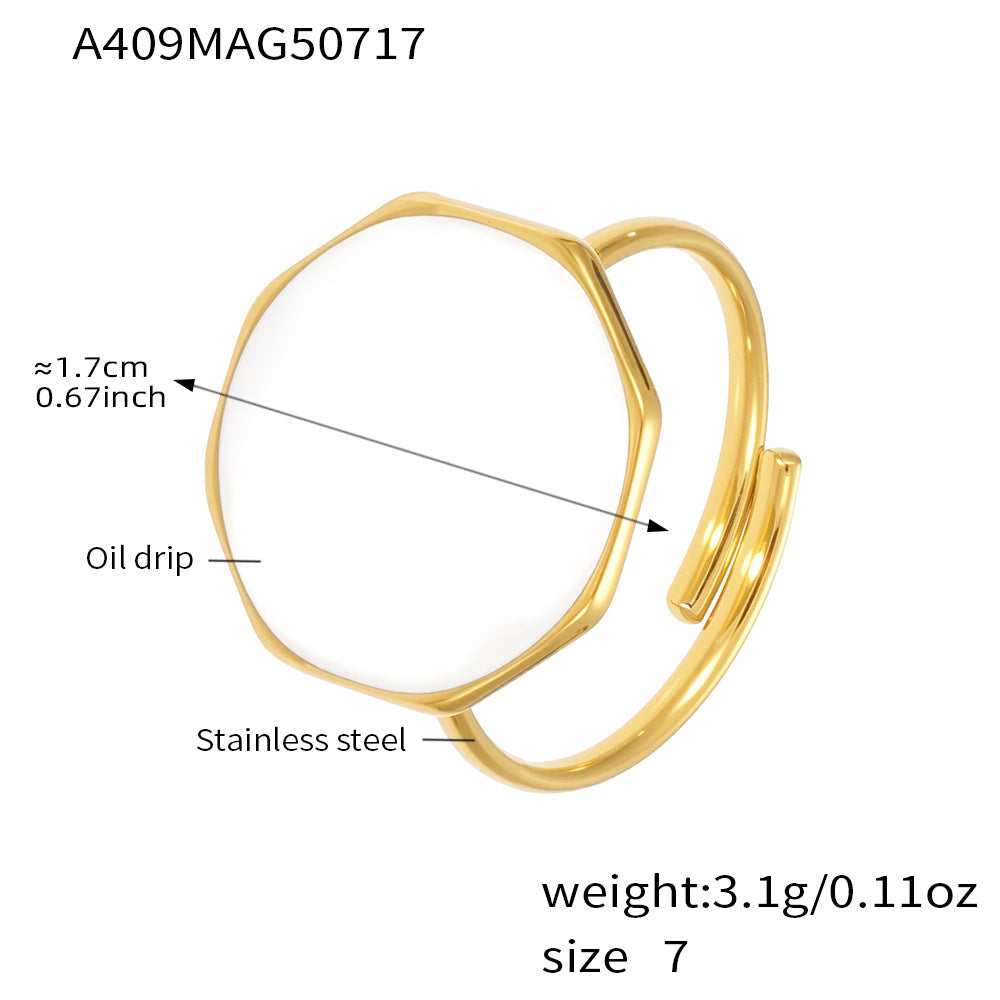 B廠【A409】不鏽鋼八角圓盤滴油開口戒指套18k真金簡約時尚百搭食指戒 25.07-4