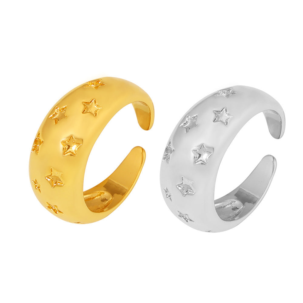 B廠【A414】歐美復古風星星寬版光面開口戒指ins風小眾設計感銅材質飾品 24.08-2