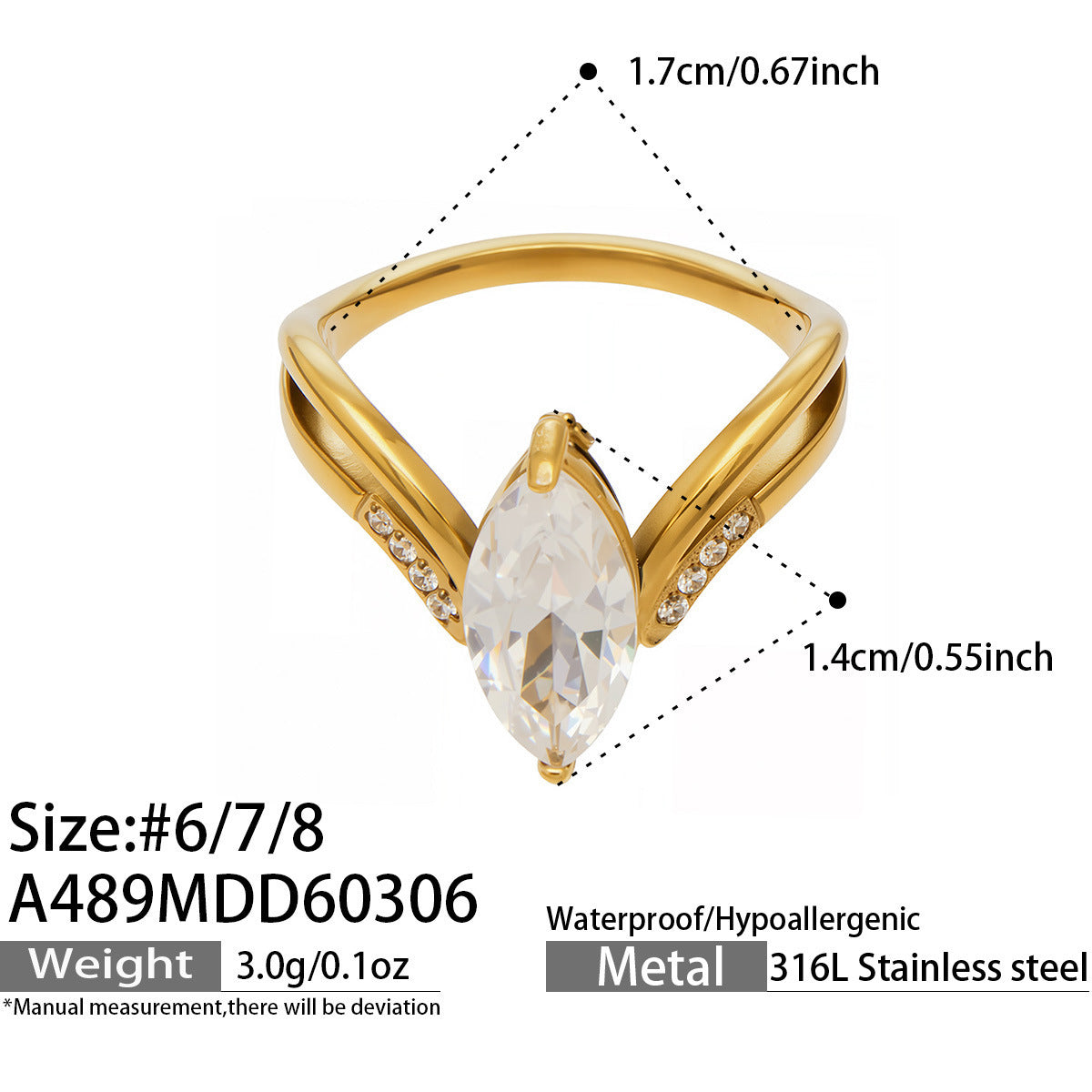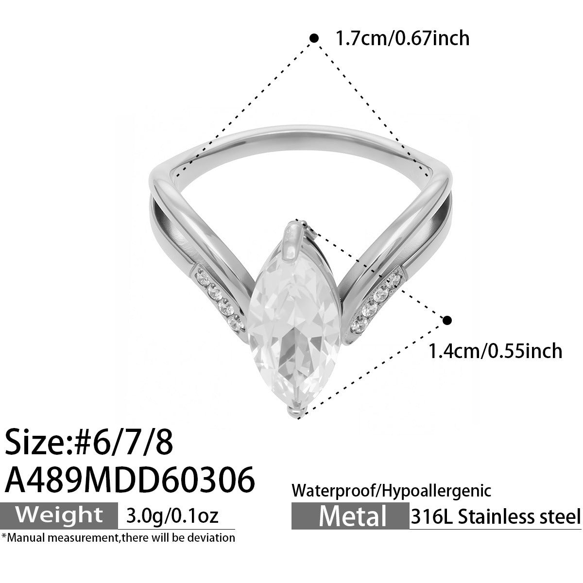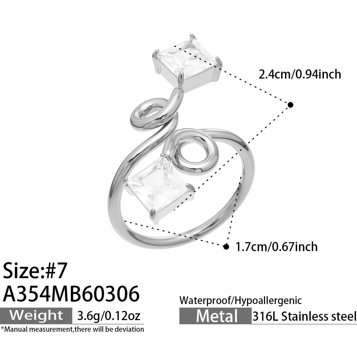 B廠【A489】ins小眾設計超閃5A鋯石戒指幾何形指環歐美網紅熱銷款不鏽鋼飾品 26.03-2