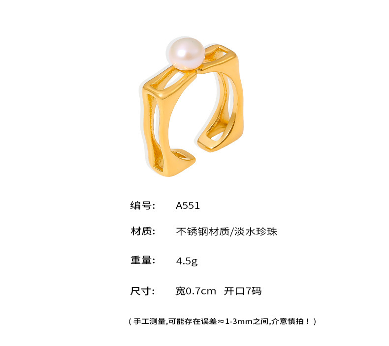 B廠【A551】歐美新款金方形鏤空鑲珍珠戒指ins風小眾開口食指戒不鏽鋼鍍18k金 24.08-2